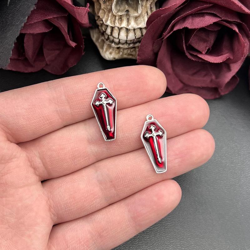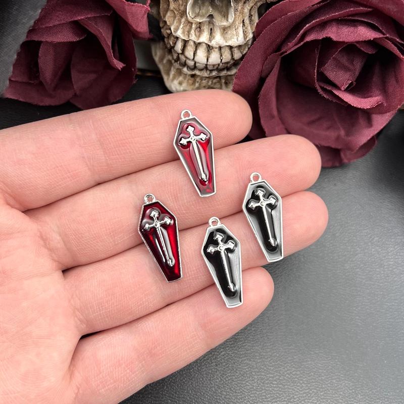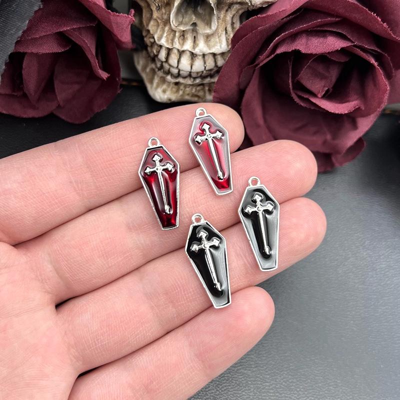 10 шт. 26*11 мм Эмалевые Хэллоуинские Шармы Вампир Крест Гроб Подвески для Ожерелья Брелока Аксессуары для Изготовления DIY Ювелирных Изделий
