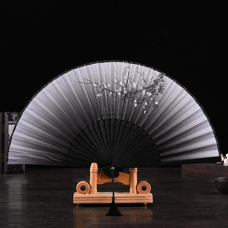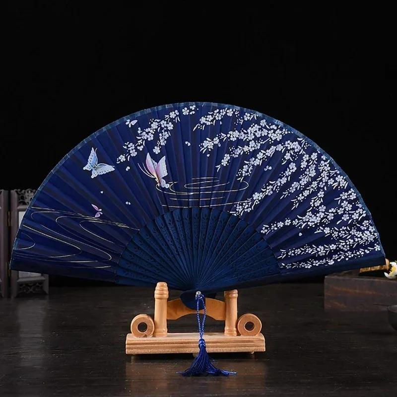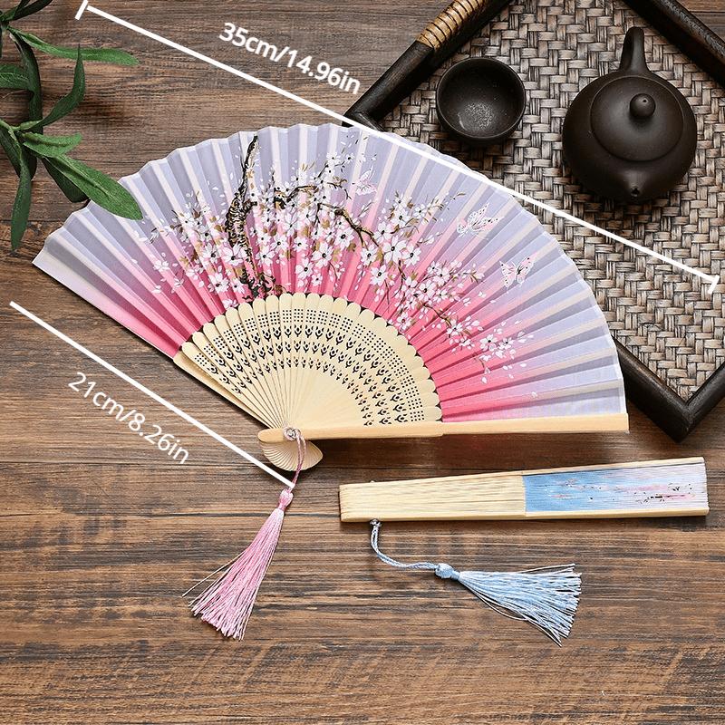 Винтажный шелковый складной веер в стиле ретро, китайский японский бамбуковый складной веер с кисточками для танцев, ручной веер, украшение для дома, орнамент, подарок для рукоделия