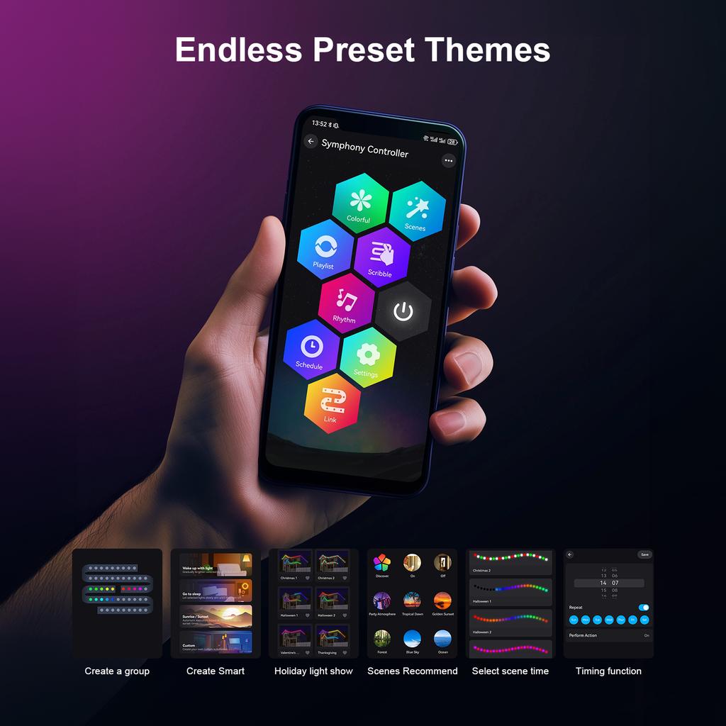 20M Постоянное уличное освещение Умные светодиодные светильники RGBIC для карнизов с приложением/пультом дистанционного управления Полное мигающее освещение для дома Рождественский декор