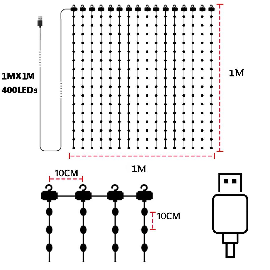 Умные светодиодные гирлянды-шторы 9,8 фута x 9,8 фута 400 светодиодов питание от USB DIY художественное комнатное освещение гирлянды с приложением и пультом управления Рождество