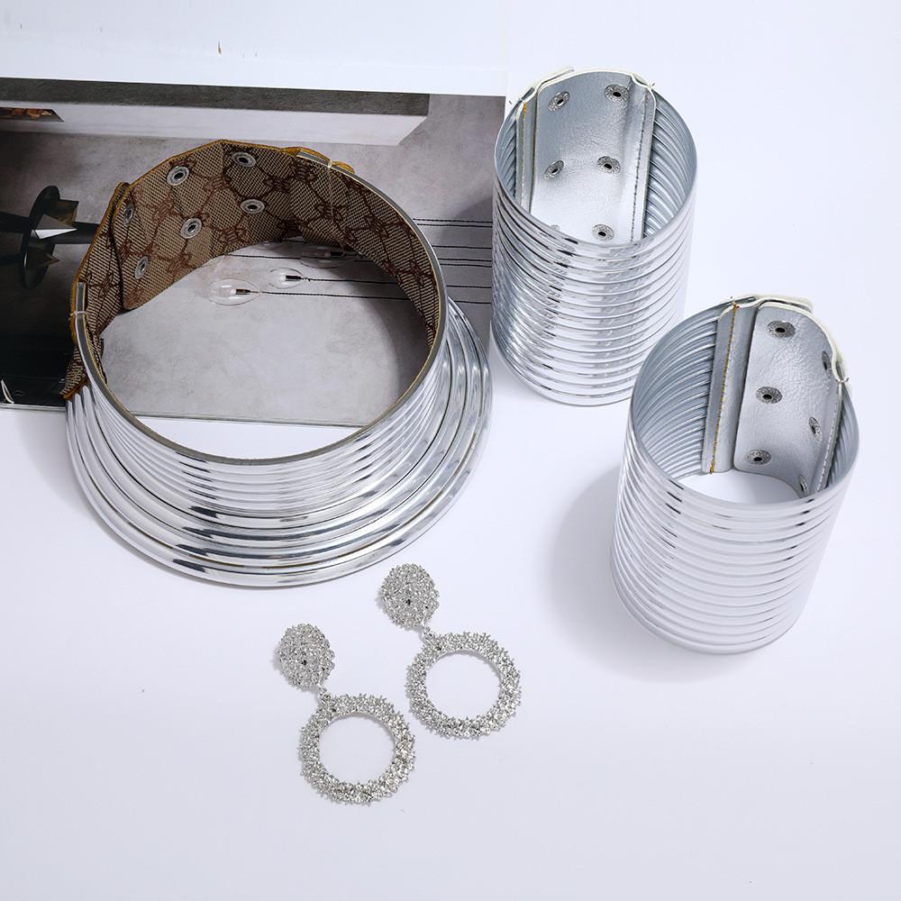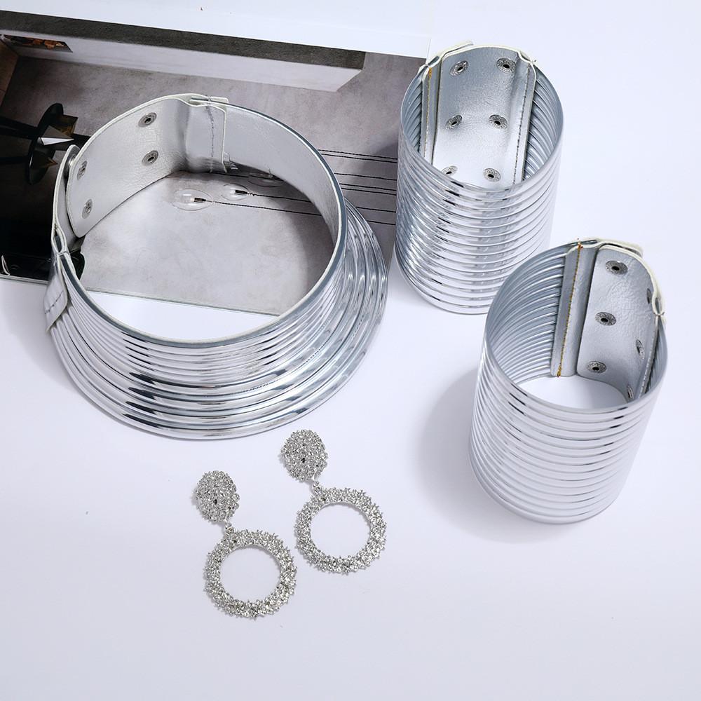 Этнический женский стиль металлический набор ожерелье, браслет и серьги для праздничного наряда