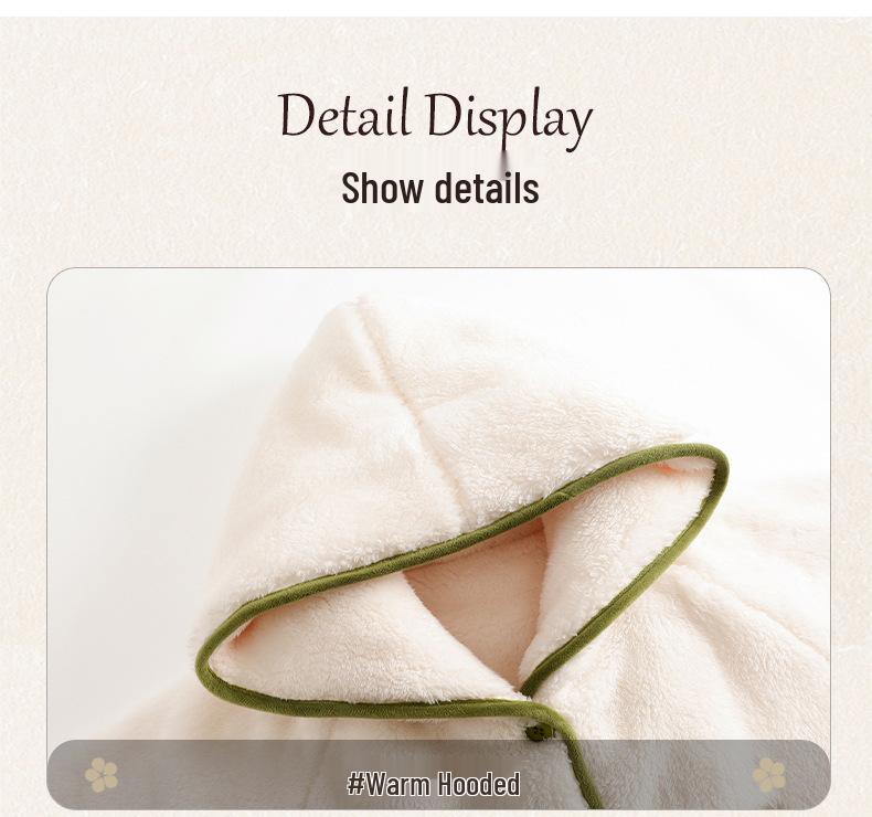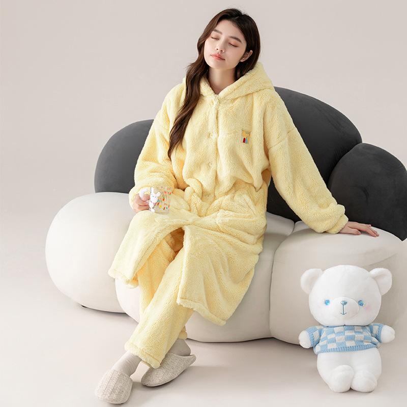 Женский милый пижамный комплект с капюшоном из кораллового флиса - Фланелевый длинный халат для осени/зимы