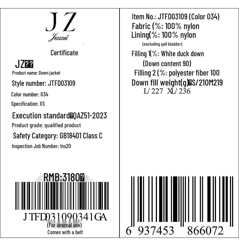 JUZUI Женский повседневный пуховик с длинным рукавом на молнии, цветной блок