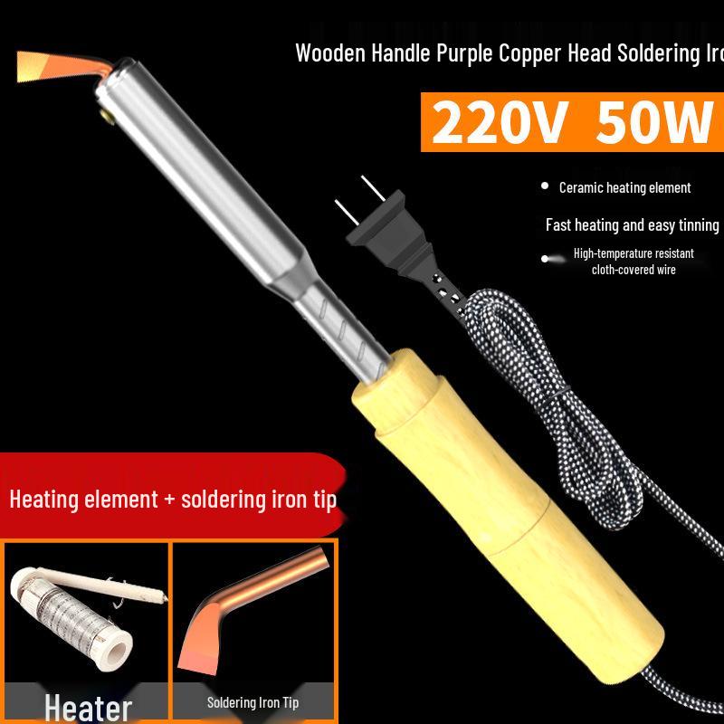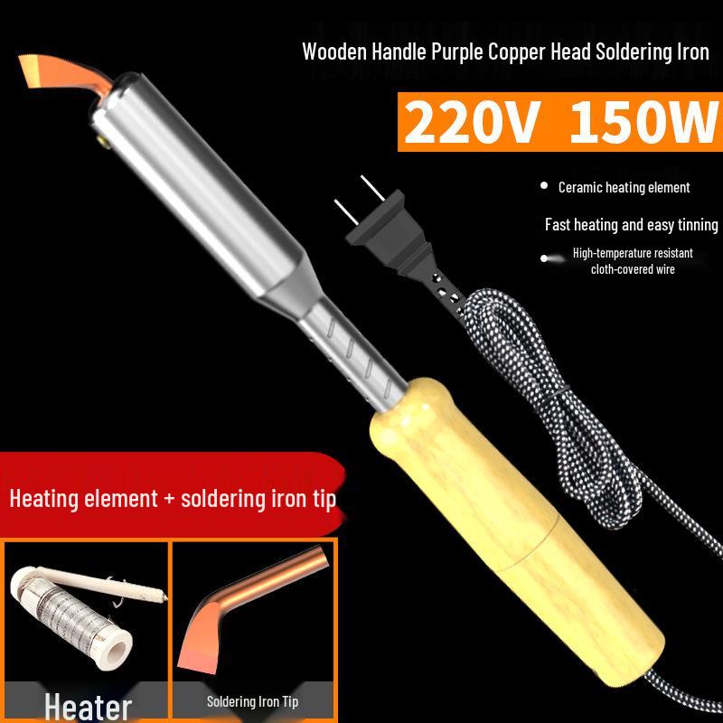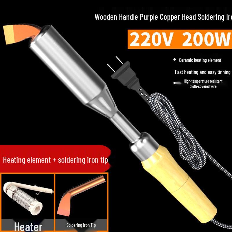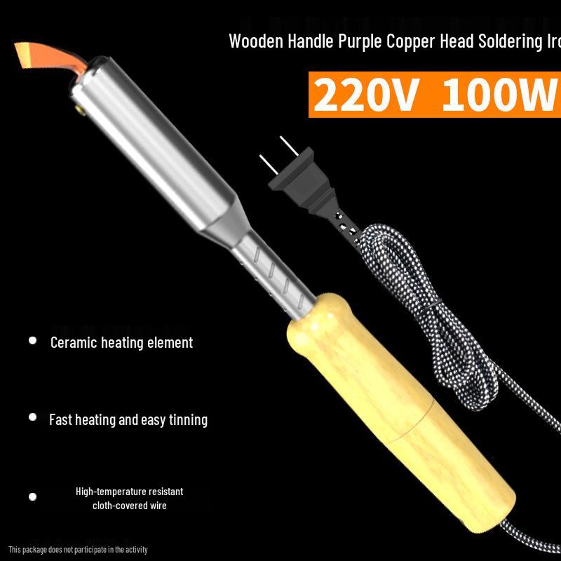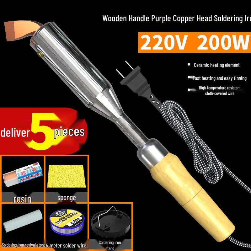 Электрический паяльник высокой мощности с деревянной ручкой, постоянная температура, сменная головка, профессиональный инструмент для ремонта/пайки