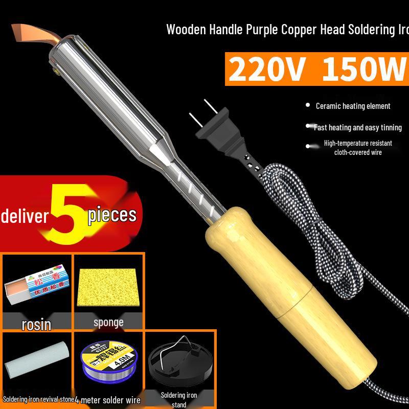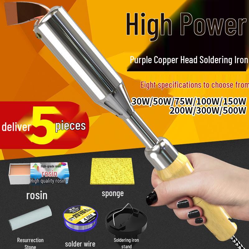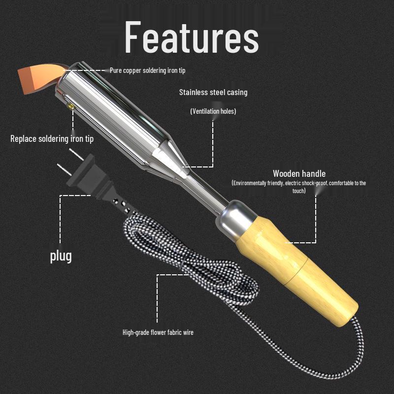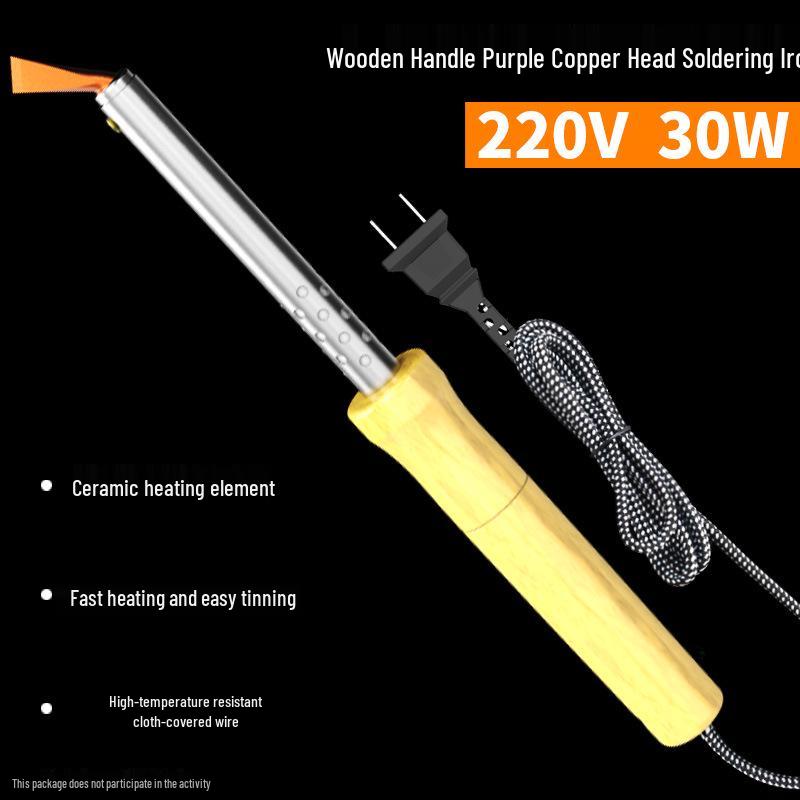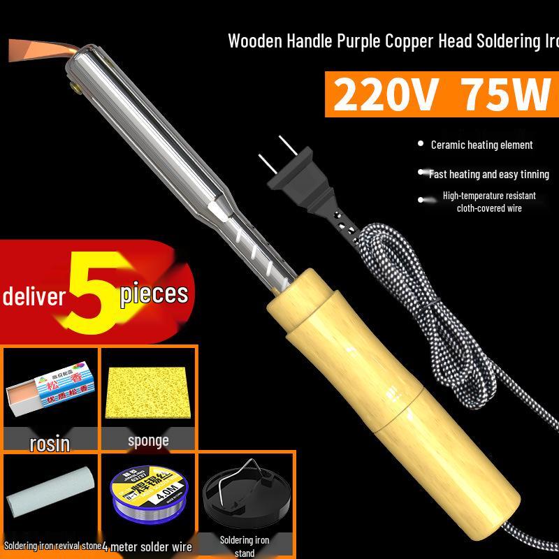 Электрический паяльник высокой мощности с деревянной ручкой, постоянная температура, сменная головка, профессиональный инструмент для ремонта/пайки