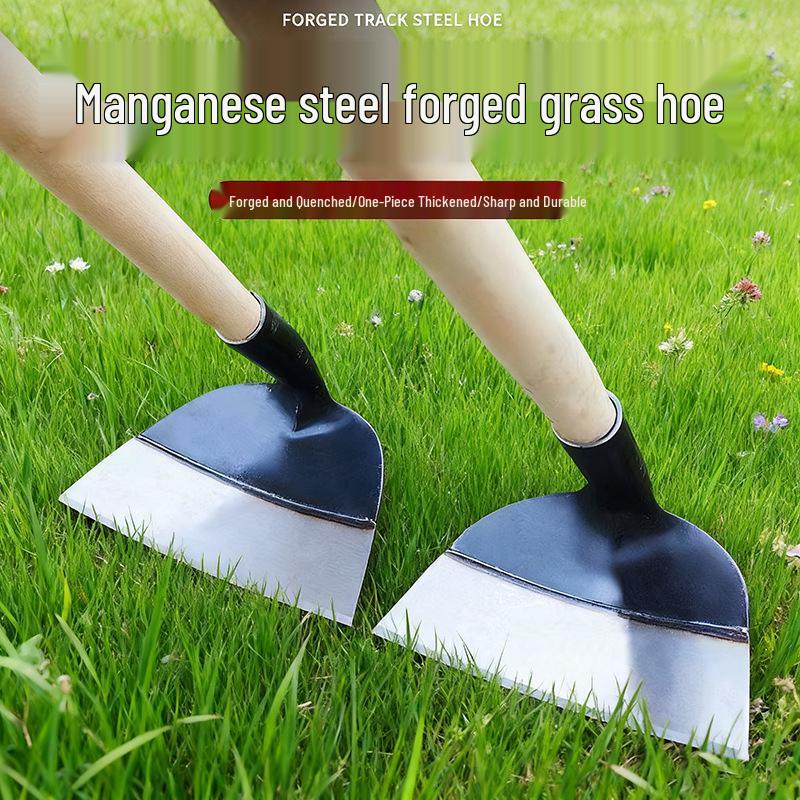 Мотыга из марганцевой стали с длинной ручкой: Идеально для прополки, копания и рыхления почвы - Цельностальное, утолщенное сельскохозяйственное орудие для использования на открытом воздухе.