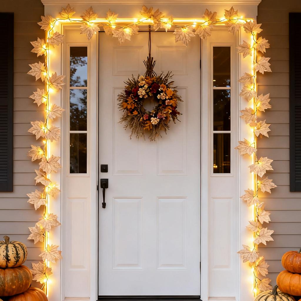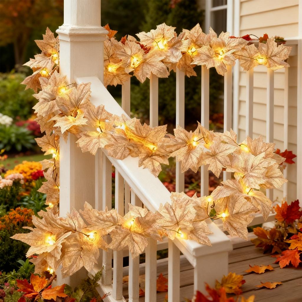 6-метровая гирлянда: Включает 60 светодиодных фонариков в виде кленовых листьев.