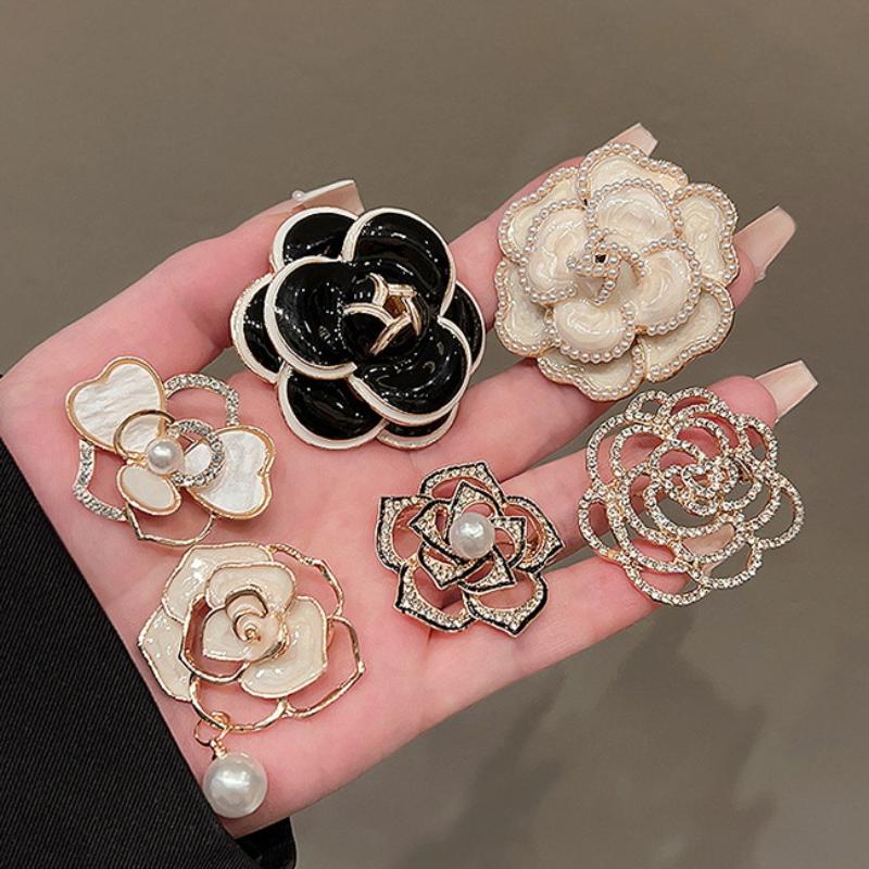 1 шт. Изысканная брошь в виде французской камелии из смолы и страз для женщин, элегантная брошь для повседневной носки и банкетов, аксессуар-булавка для костюма