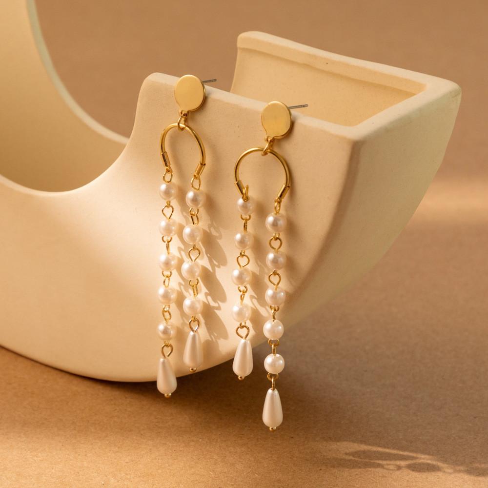 Простые и элегантные асимметричные серьги-кисточки с жемчугом для женщин