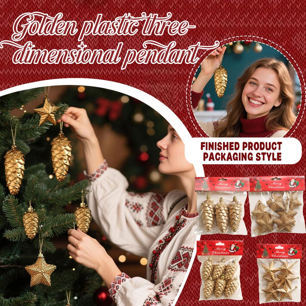 Retro Gold Plastic 3D Five-pointed Star Packaging Christmas Tree Decoration Ornament Scene Decoration