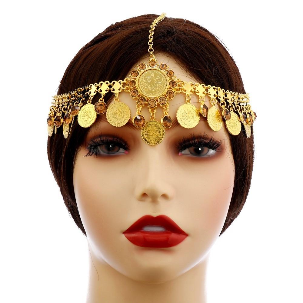 Этот головной убор в винтажном стиле имеет геометрический дизайн, изготовленный из прочного сплава. Украшенный сверкающими искусственными бриллиантами, золотистыми акцентами и многослойными монетными элементами, он обладает поразительным визуальным эффектом.. Подходящий для танцевальных выступлений, модных мероприятий или культурных торжеств, он добавляет нотку элегантности любому образу.. Протирайте мягкой тканью для поддержания блеска.