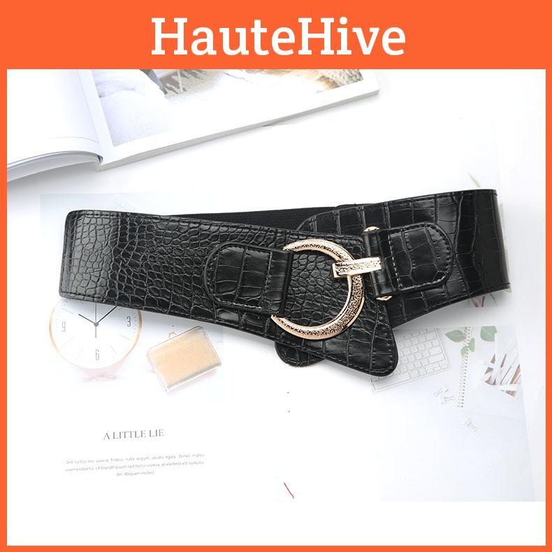 Эластичный женский широкий пояс с деталями швов и C-образной застежкой для повседневной носки