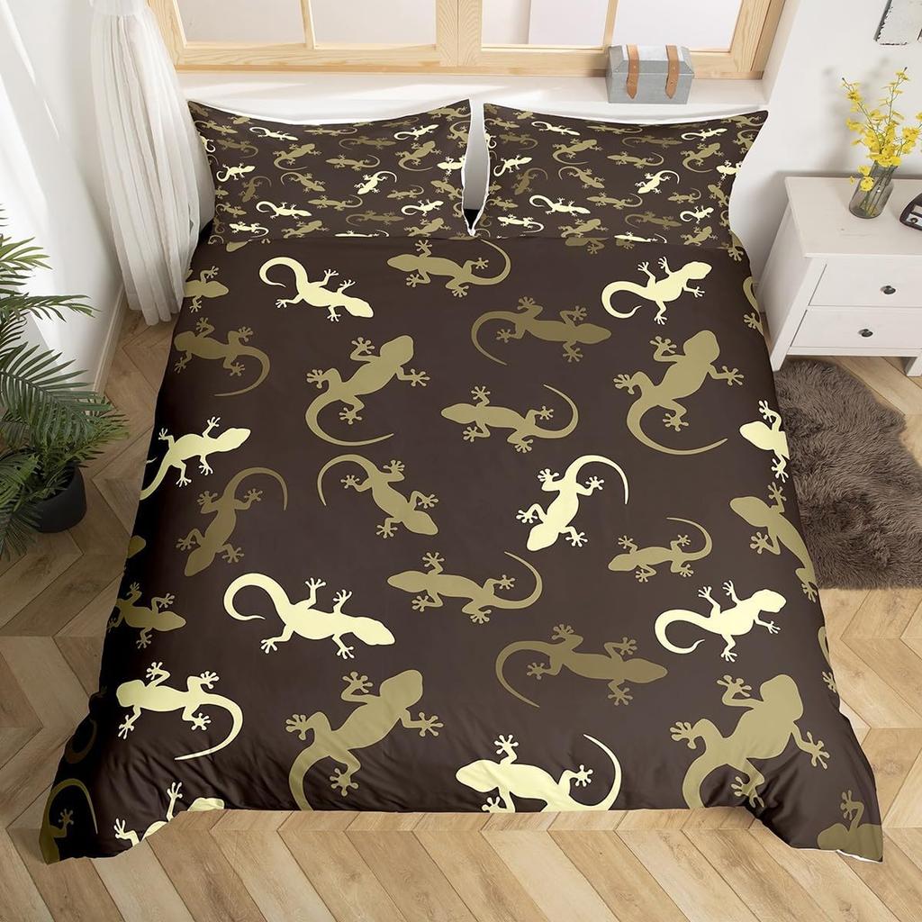 Lizard Reptiles Duvet Cover Gift For Boys Girls Funny Gecko Bedding Set Full Queen Microfiber Cute Animal Theme Comforter Cover