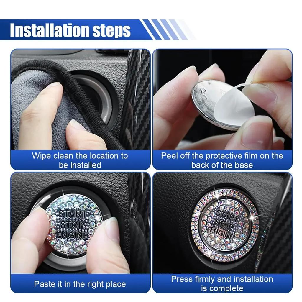 Car Bling Crystal Rhinestone Engine Start Ring Decals, Car Push Start Button Cover Sticker, Sparkling Car Interior Accessories