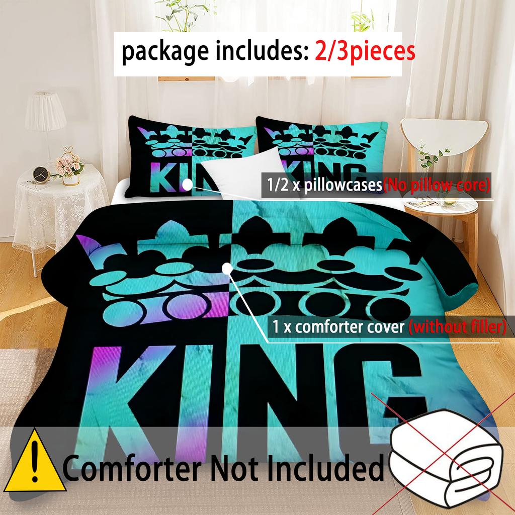 King'S Crown Pattern 3D Printed Bedding Cover Black Color Style Duvet Cover For Teens Adults Polyester Quilt Cover Pillowcase