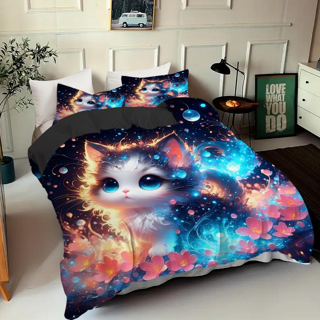 Милый мультяшный кот 3D-принт Пододеяльник Прекрасное постельное белье Мягкий удобный полиэстеровый пододеяльник Домашний текстиль Роскошный комплект постельного белья