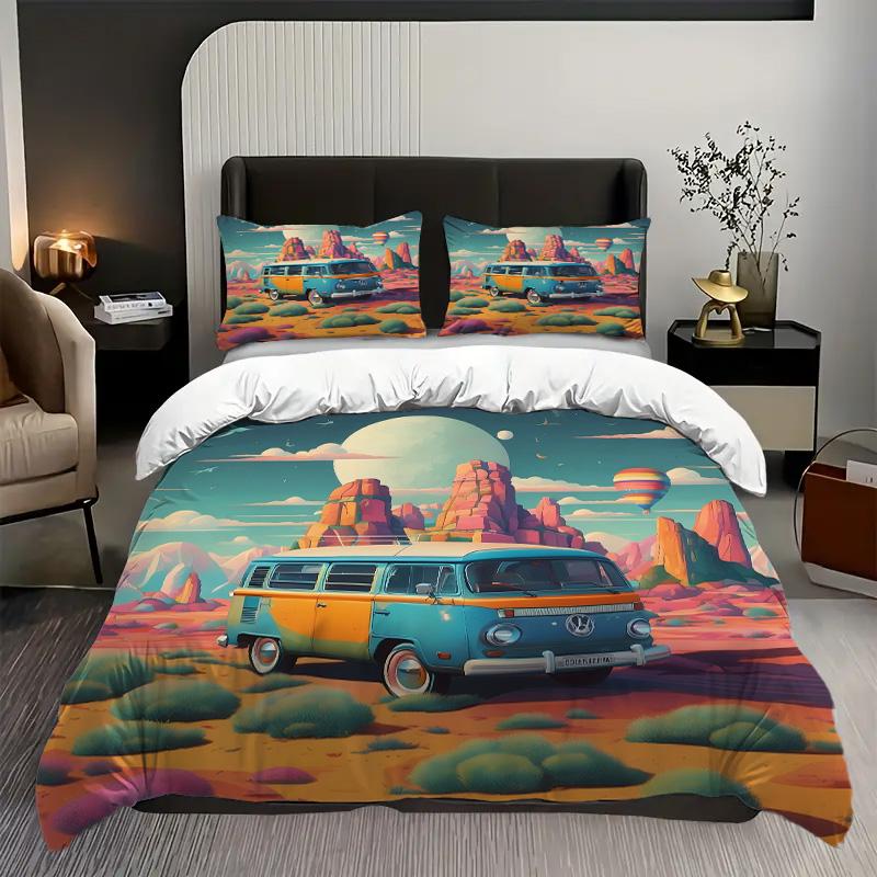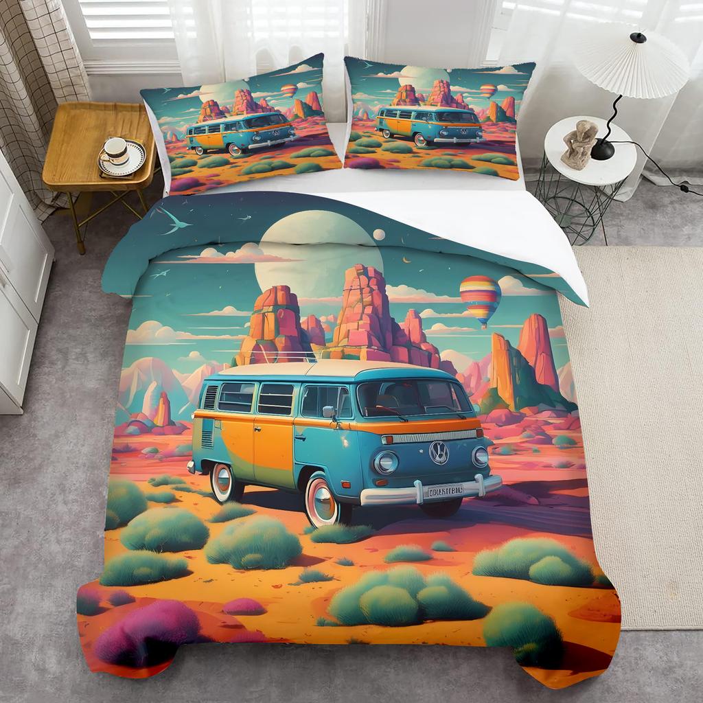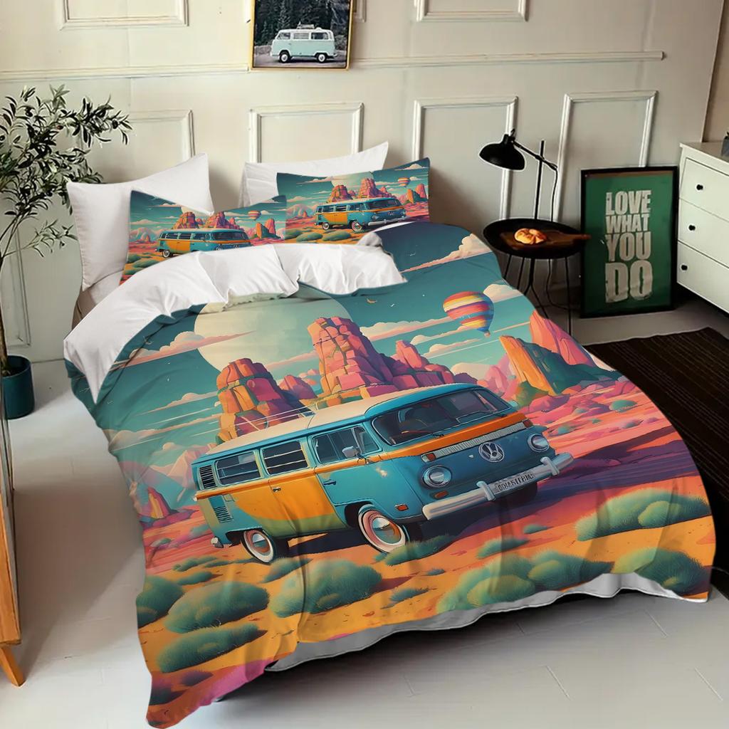 Camping Car Pattern 3D Printed Quilt Cover Set Cartoon Style Bedding Set Luxury Home Textiles Comfortable Duvet Cover Pillowcase
