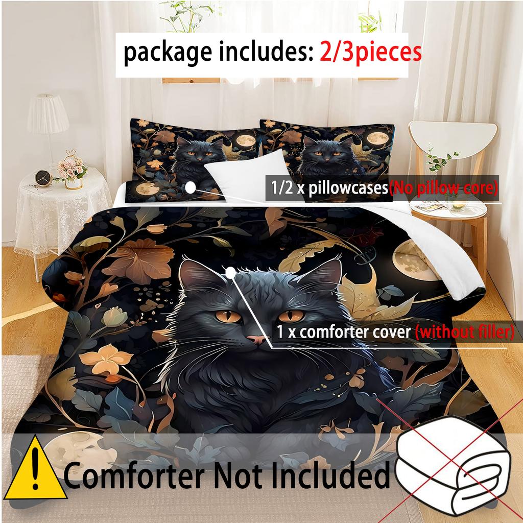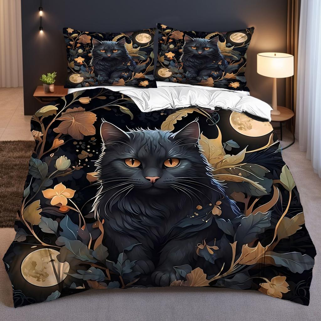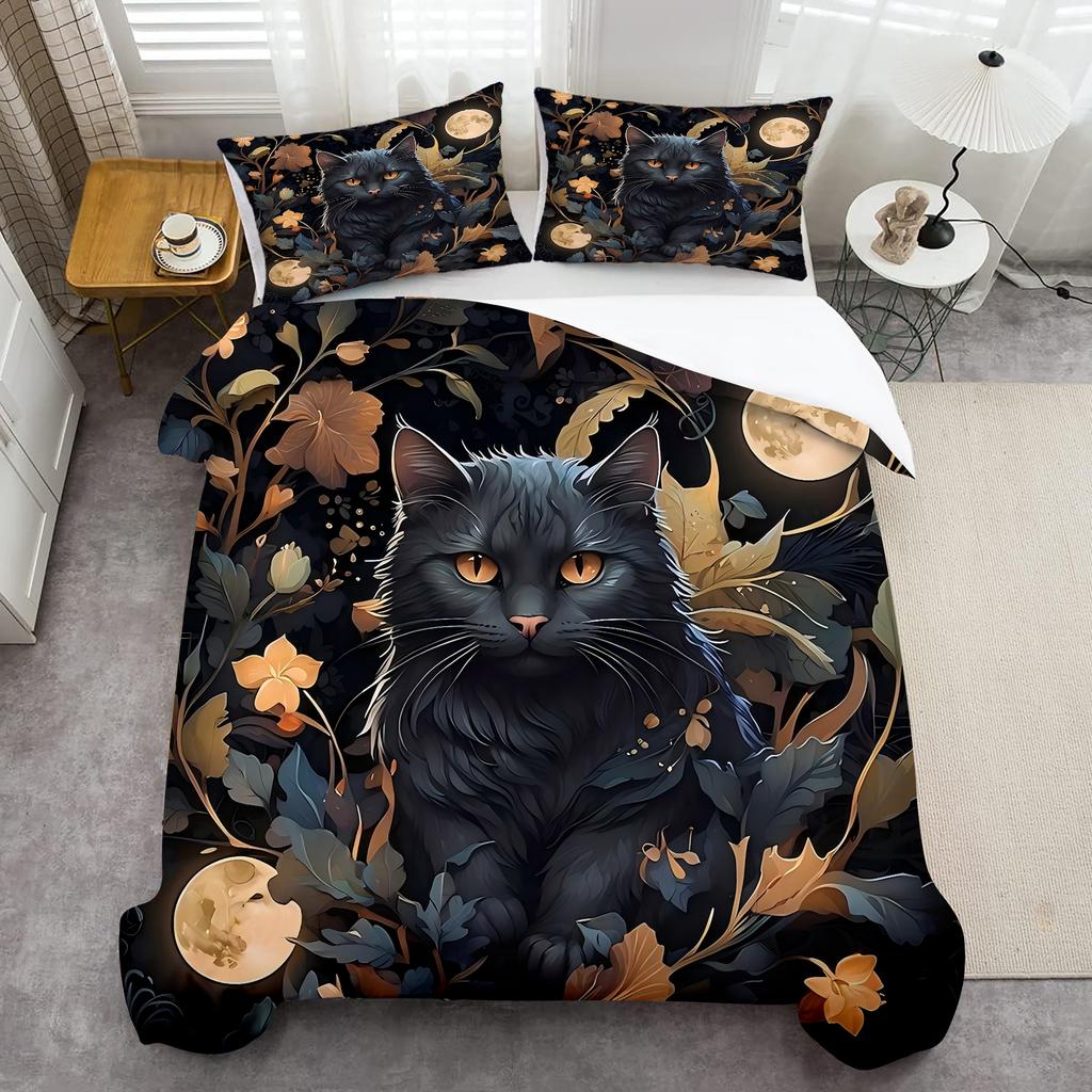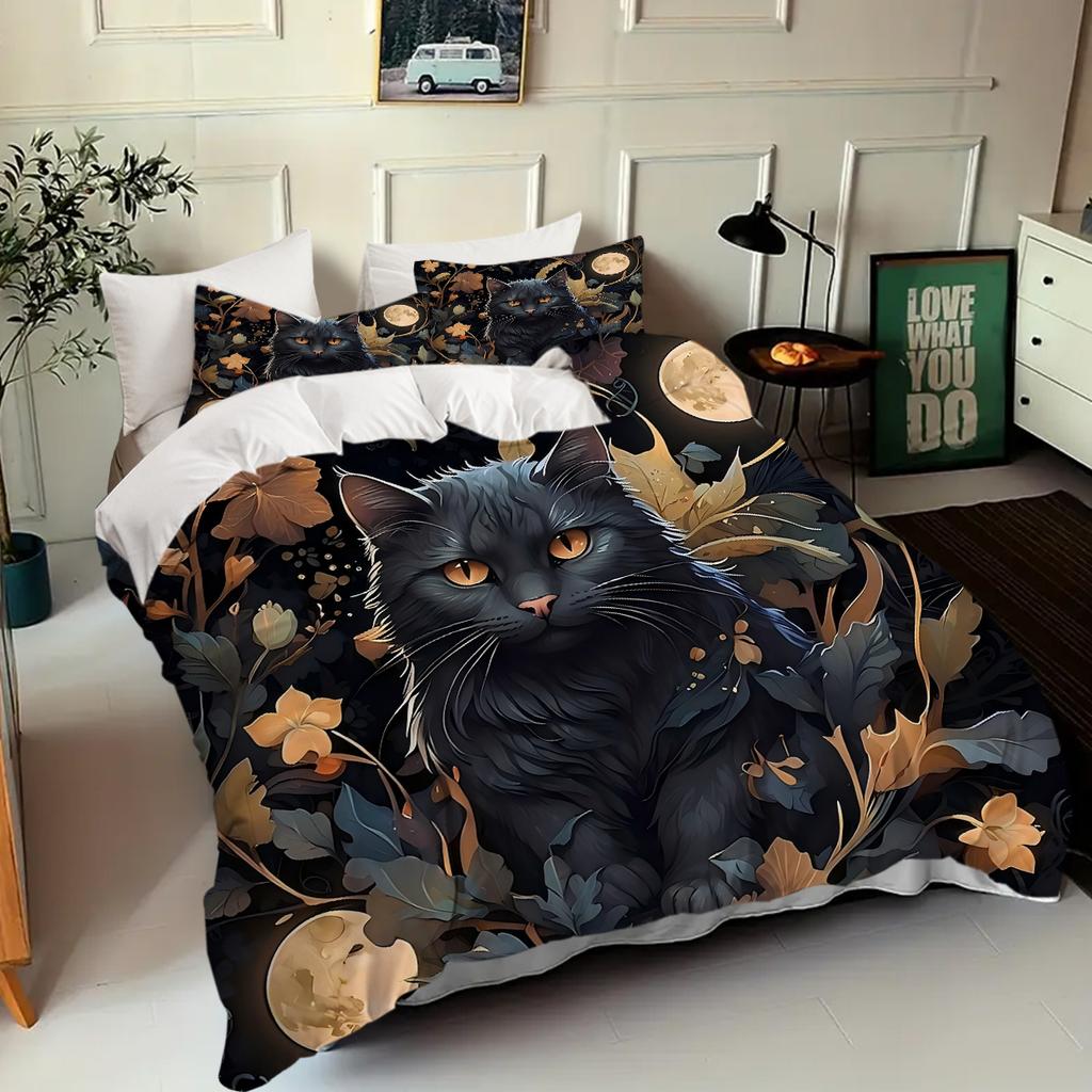 Черный Кот на Луне 3D Печать Пододеяльник Мистическое Животное Стиль Постельное Белье Домашний Декор Мягкий Удобный Роскошный Пододеяльник Наволочки
