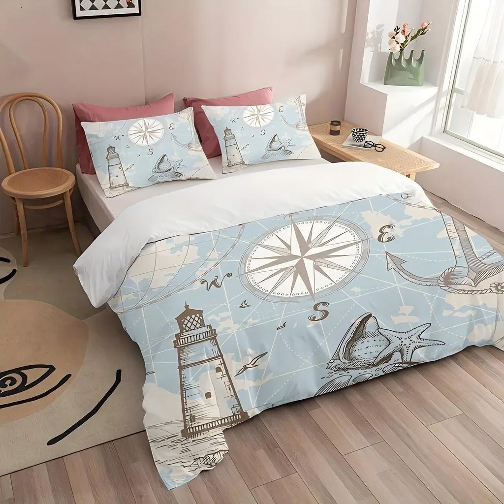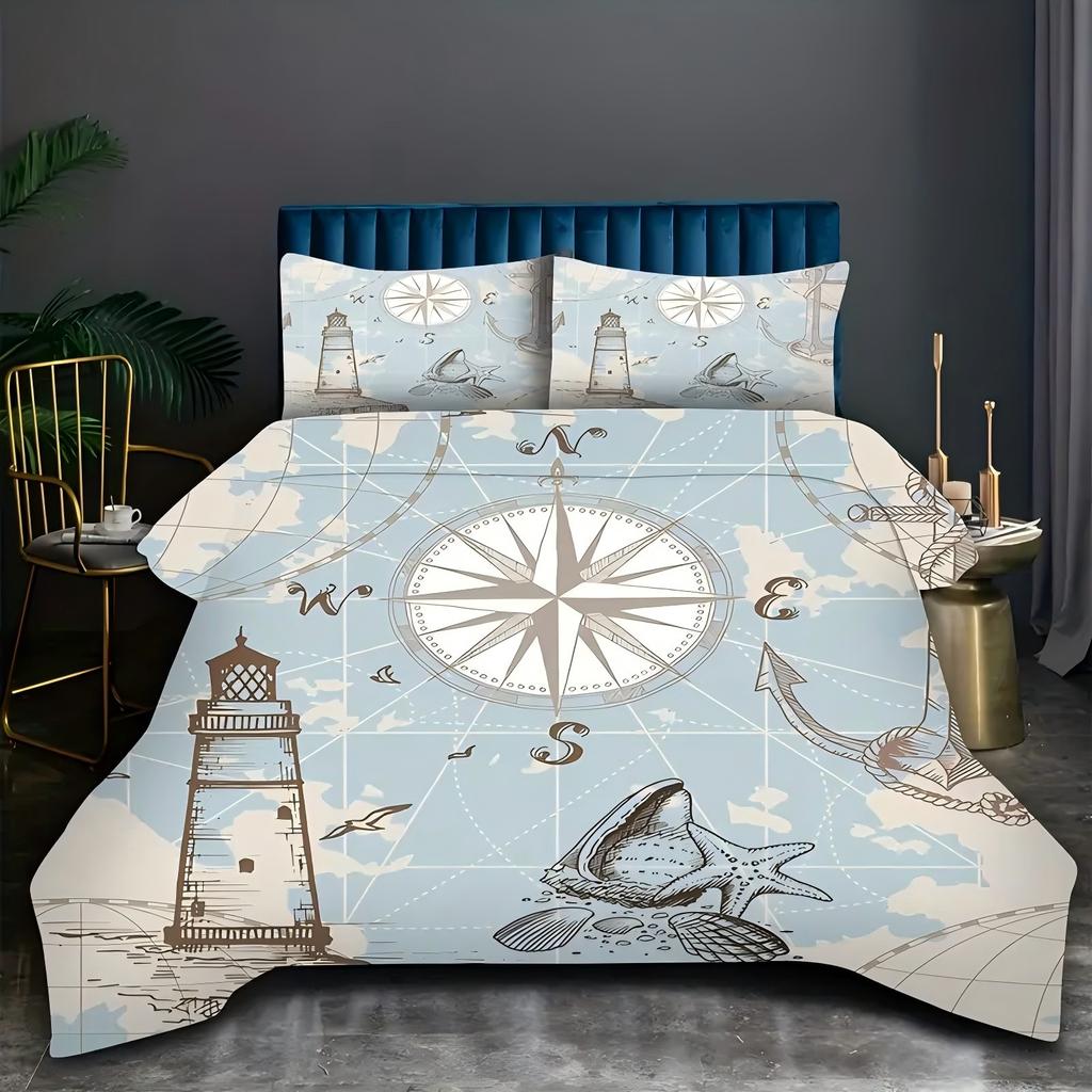Retro Pirate Ocean World Pattern 3D Printed Quilt Cover Retro Art Style Duvet Cover Soft Comforter Luxury Bedding Set Pillowcase