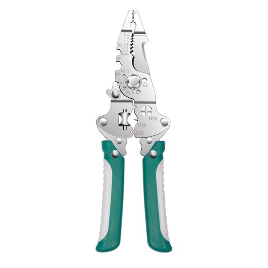 Рукоятка с ПВХ-покрытием обеспечивает удобный захват, что делает ее идеальной для длительного использования. Идеально подходящий для тонких кабелей, этот универсальный инструмент легко и надежно выполняет зачистку, резку и многое другое.