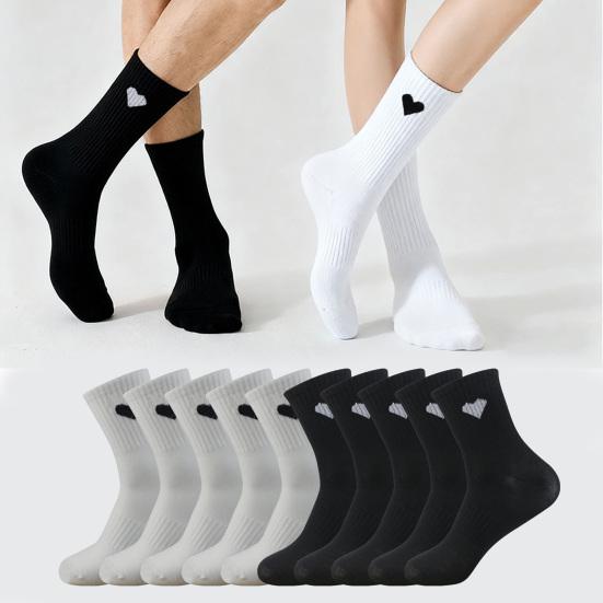 5 пар мужских носков с сердечками, повседневные рубчатые носки до щиколотки с черно-белыми сердечками, дышащие влагоотводящие спортивные носки для спорта, бега