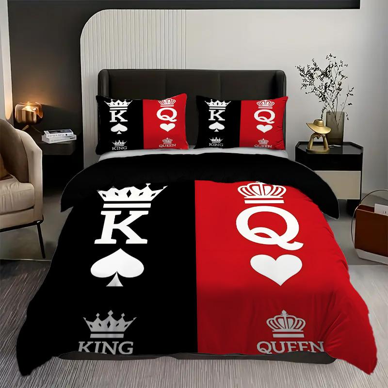 Пододеяльник с 3D-принтом Корона Короля Королевы, черно-красная цветовая гамма, парный стиль, постельный набор, домашний мягкий текстиль, пододеяльник, наволочка — купить товар онлайн с бесплатной доставкой по всему миру!