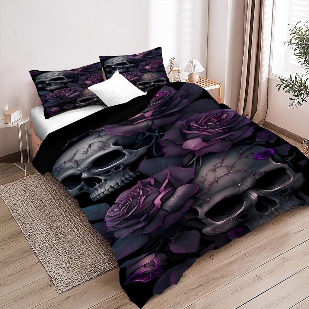 Purple Rose Skull 3D Print Duvet Cover Halloween Theme Bedding Set Soft Comfortable For Teens Adults Quilt Cover Pillowcase