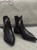 Коровья кожа~ нишевые остроносые челси детские толстый каблук заклепки тонкие весенне-осенние одинарные ботинки европейские и американские короткие ботинки и ботильоны