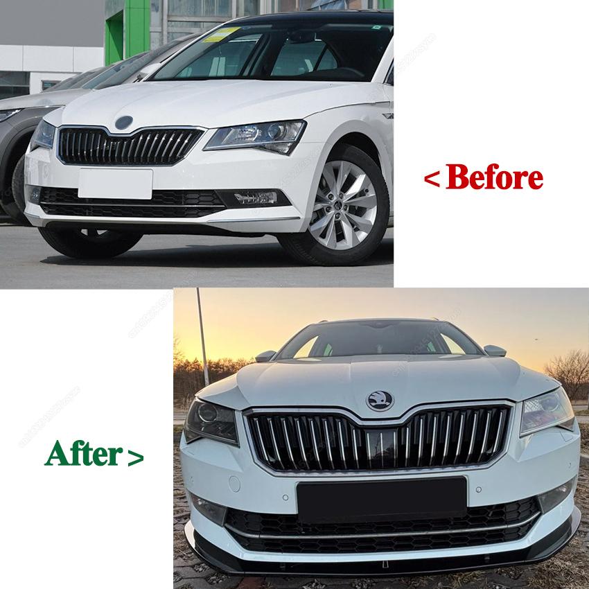 Front Bumper Lip Spoiler Splitter Diffuser For Skoda Superb B8 3V3 3V5 TSI TDI 2015-2019 Pre-Lci ABS Gloss Black Bodykits Tuning