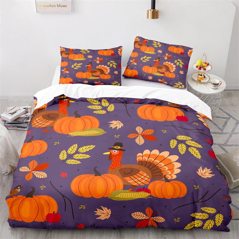 День благодарения King Пододеяльник Мультфильм Тыква Индейка Постельное белье Микрофибра Кленовые листья Одеяло Покрывало Для Мальчиков Девочек Подростков
