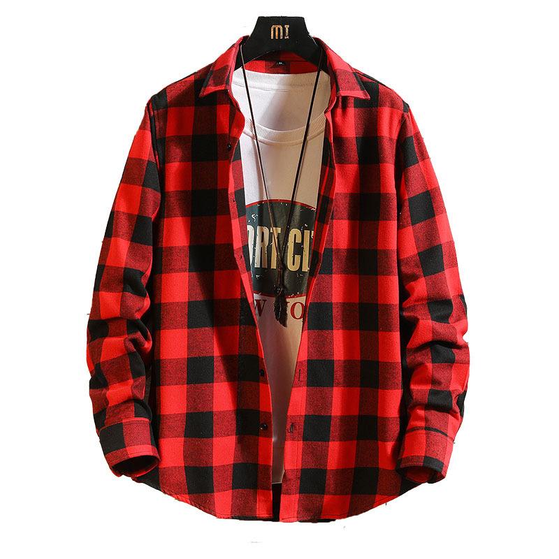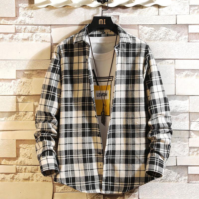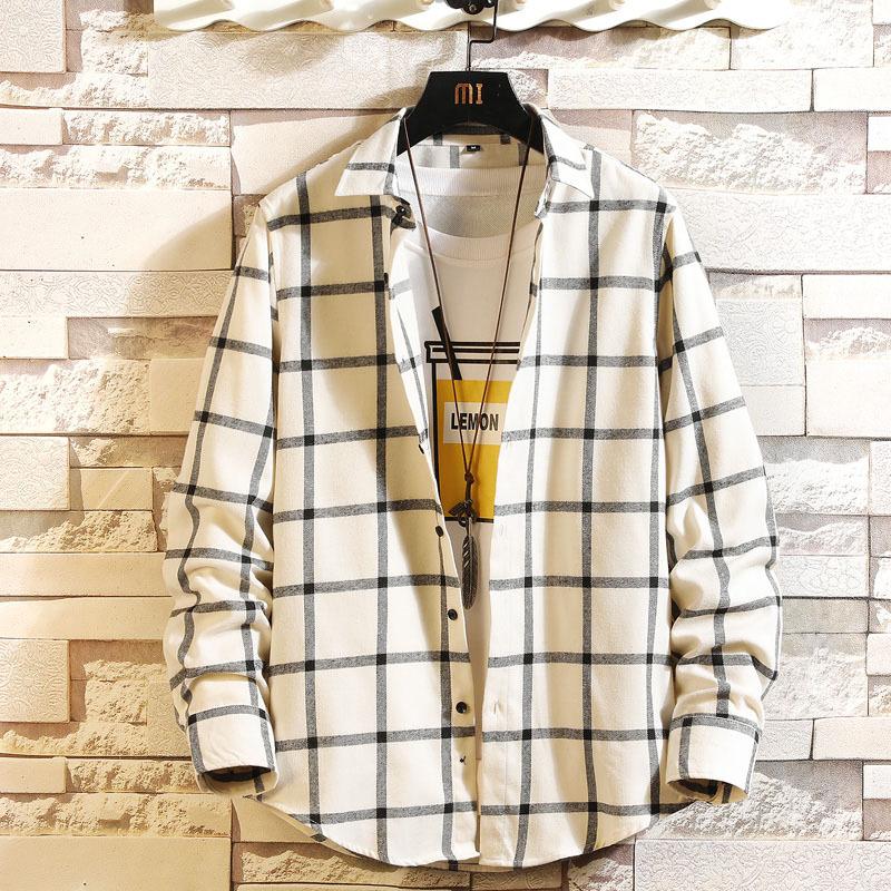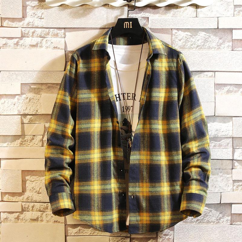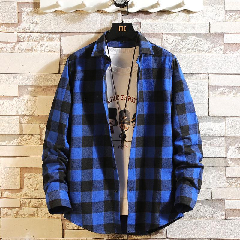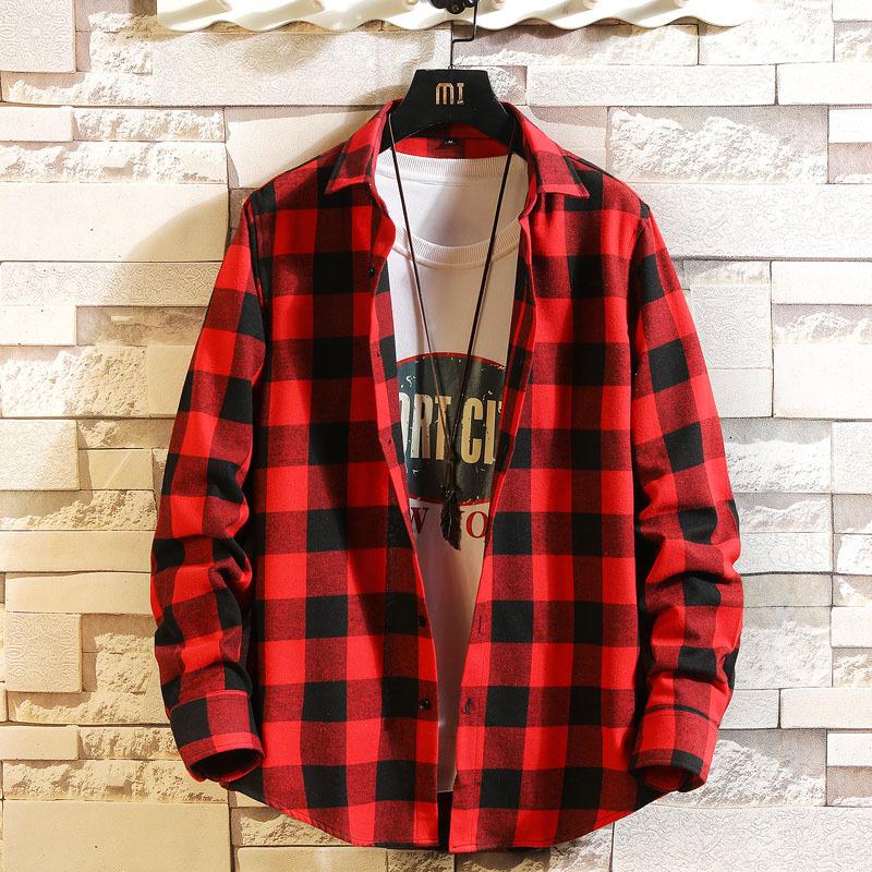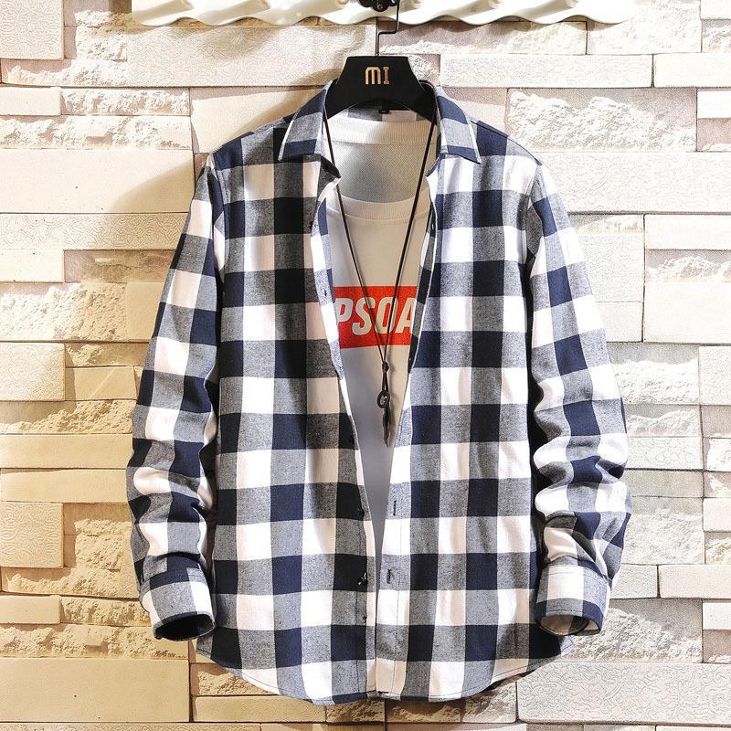 Модная рубашка с длинными рукавами в крупную клетку, мужская новая свободная повседневная рубашка в корейском стиле