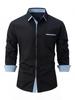 2024 Мужская приталенная рубашка из хлопка с цветными блоками и длинными рукавами - Весенняя/Осенняя мода