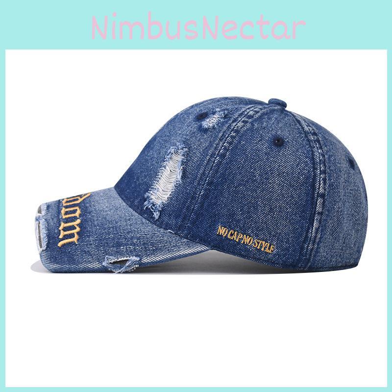 Модная бейсболка из выстиранного денима с потертостями для уличной моды — купить товар онлайн с бесплатной доставкой до всему миру!