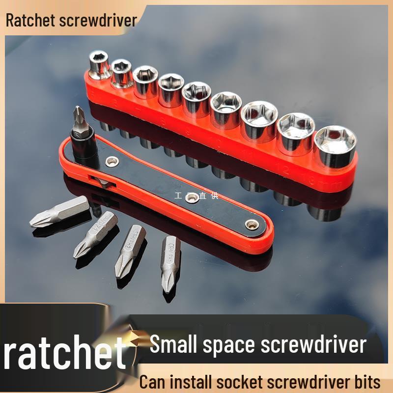 Набор мини-трещотки и L-образной отвертки Yato с насадками под шлиц, Phillips и торцевыми головками