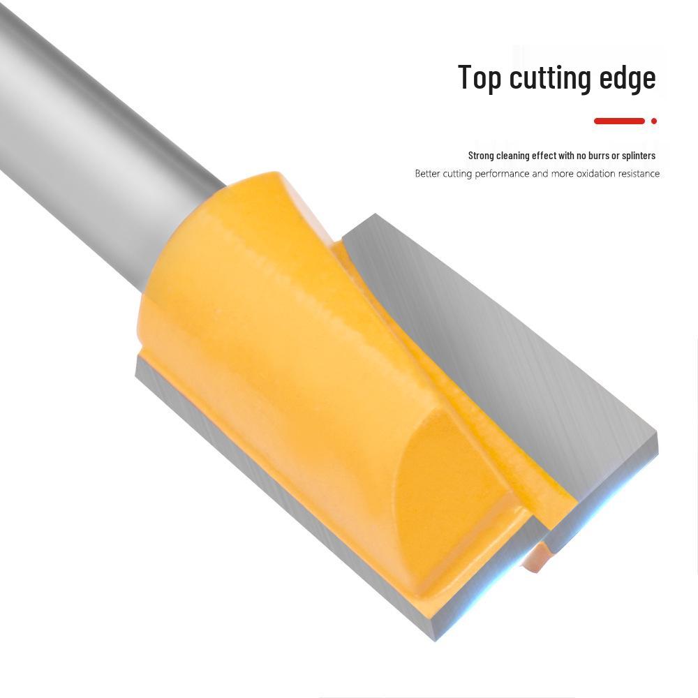 Набор из 8 фрез по дереву желтого цвета: Узорный, Нижний резец, Резьба, Снятие фаски, Фрезерование столешницы.