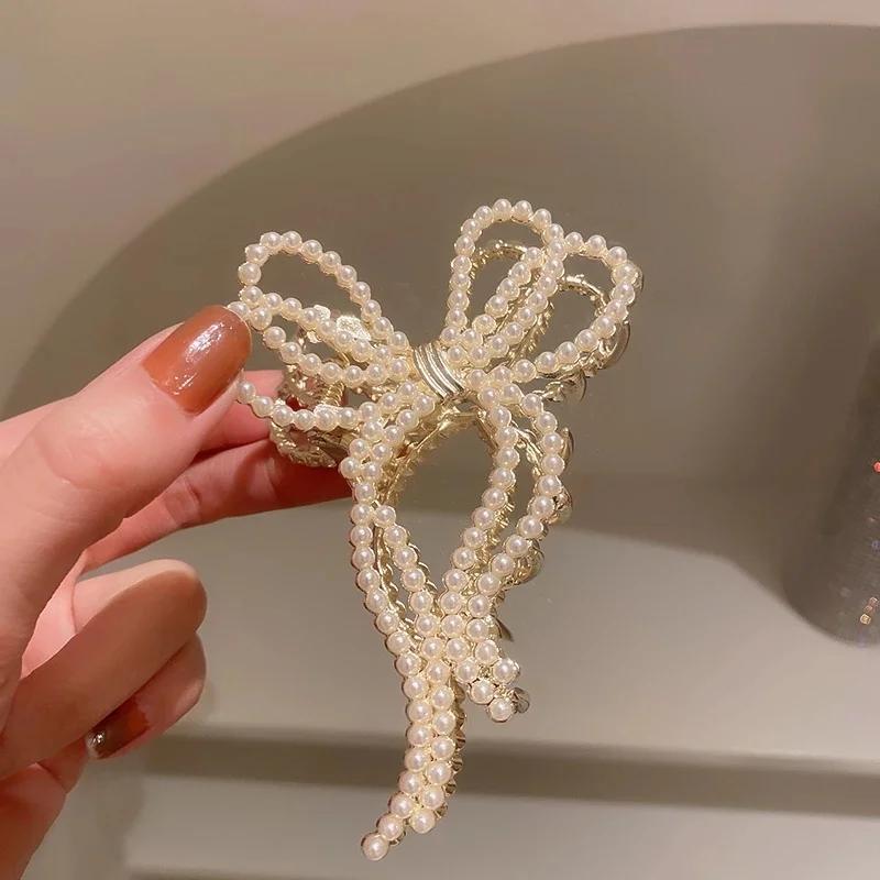 1 шт. Заколка-краб для волос с жемчугом для женщин, жемчужные заколки-банты, металлические аксессуары для волос, геометрическая полая заколка-клешня, хрустальная заколка, большая