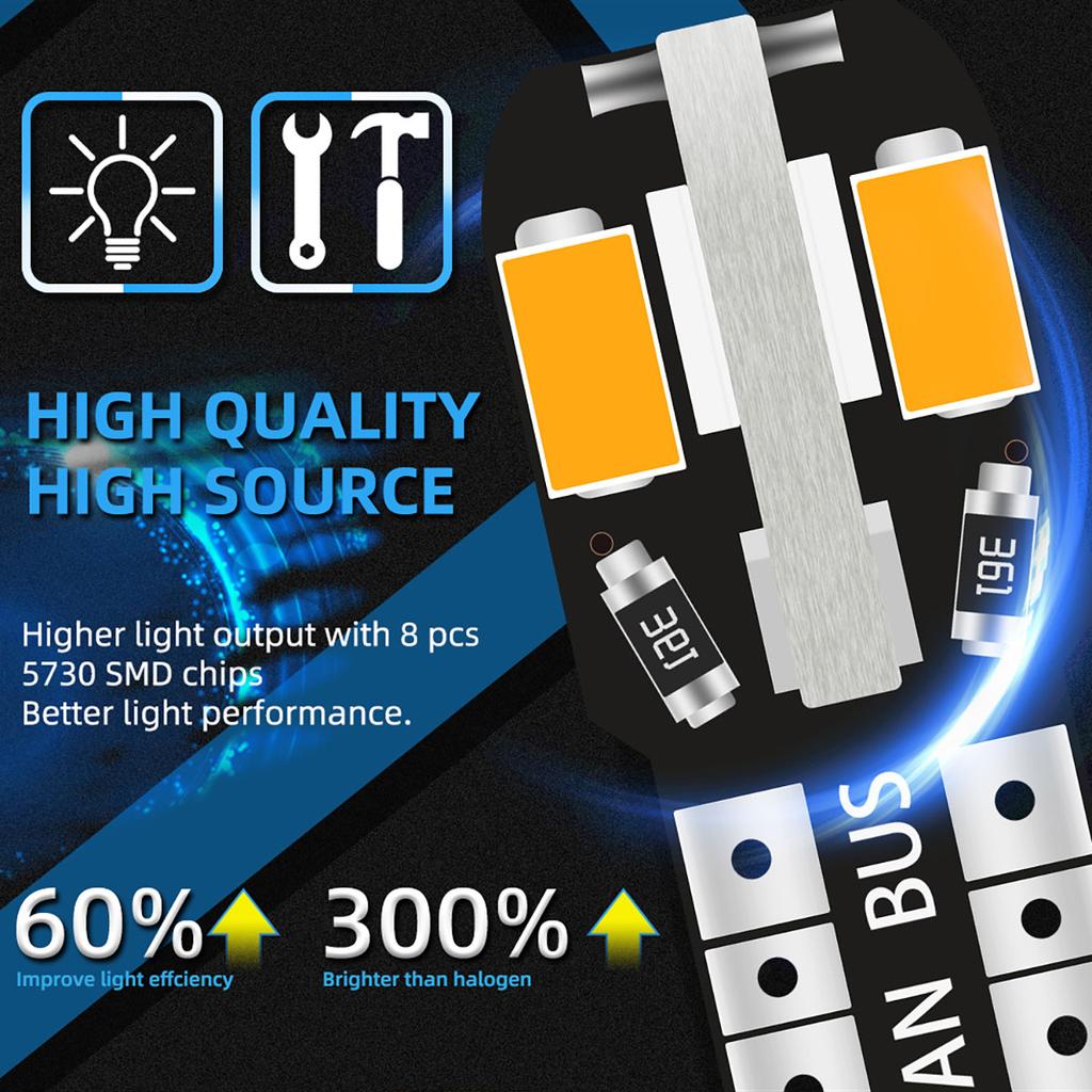 10/20 шт. Светодиодные лампы W5W T10 для автомобиля, лампа для чтения, габаритные огни, 8SMD 12V 194 168, боковая клиновидная лампа для подсветки номерного знака автомобиля, теплый белый