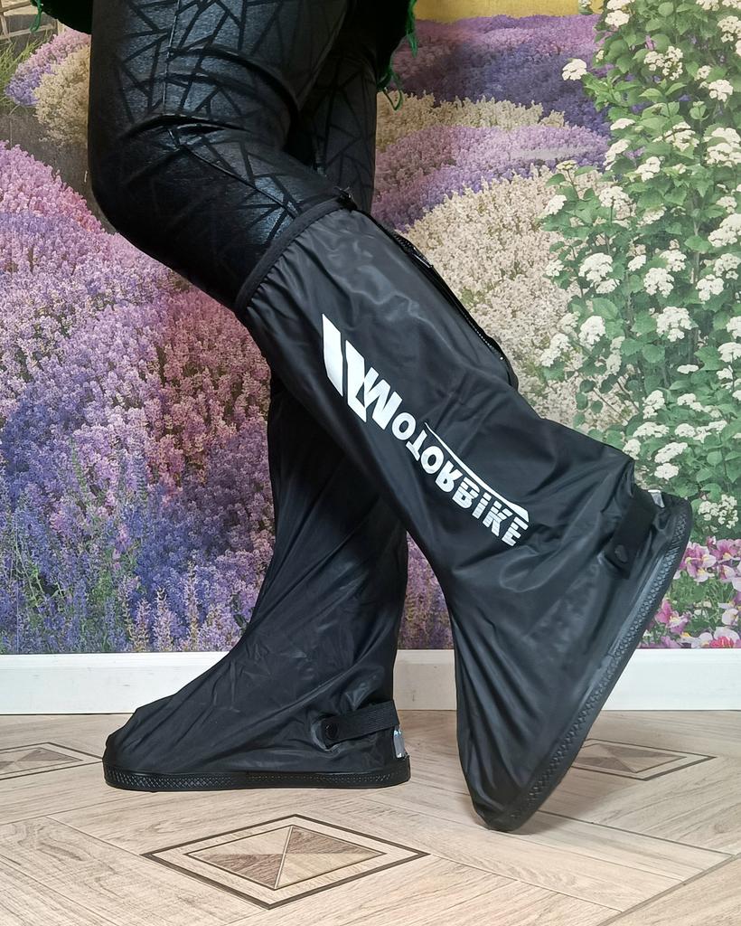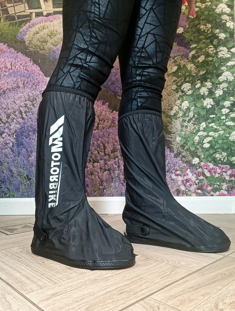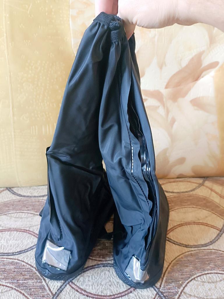 Отличные защитные бахилы для обуви ❤️ Материал плотный, водонепроницаемый - хорошо защищают от дождя, луж и грязи. Удобная молния сзади, легко надевать и снимать, плюс есть фиксация, поэтому бахилы не сползают при ходьбе. Хорошо подходят на разную обувь, даже на кроссовки и ботинки. Подошва прочная, не скользкая. Стильный внешний вид - смотрятся аккуратно и современно. Очень выручают в плохую погоду, покупкой довольна. Рекомендую 👍 Удачных покупок ❤️ Ваша Вика 😊
