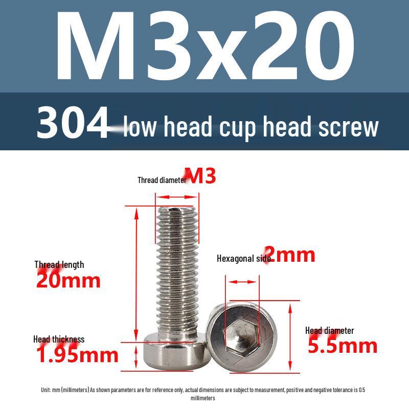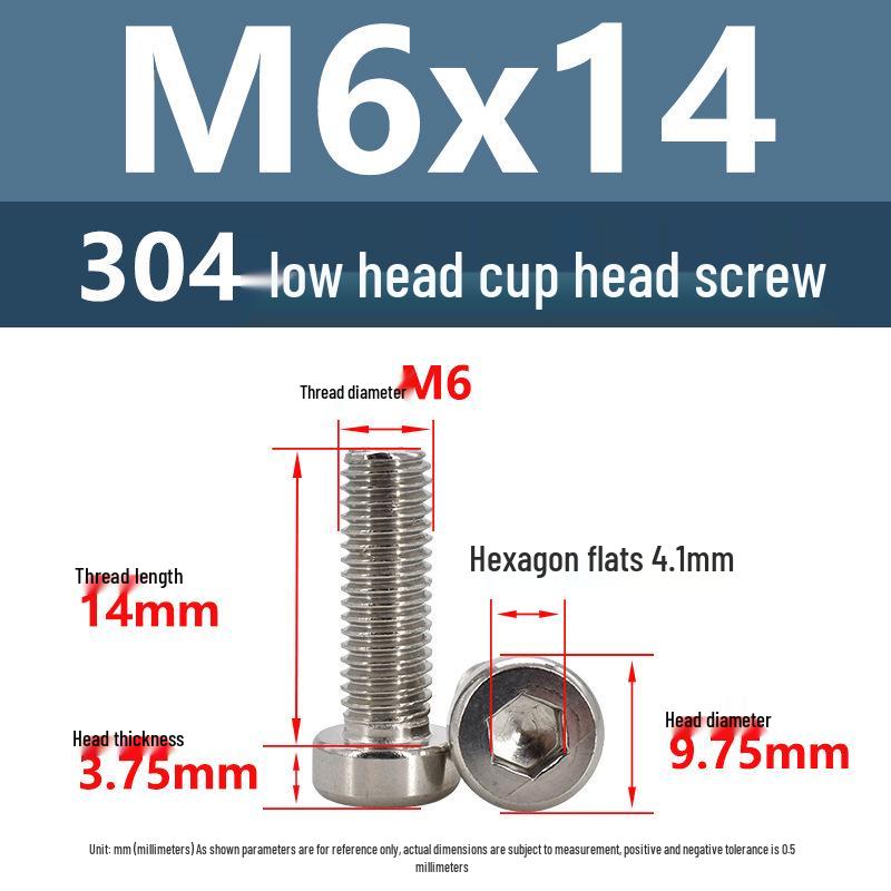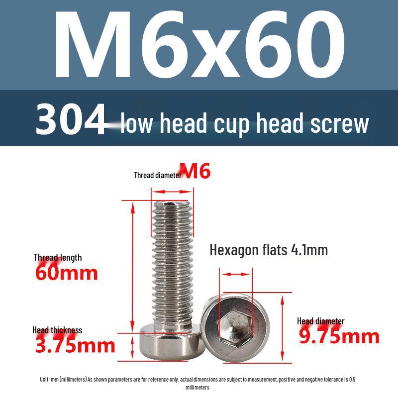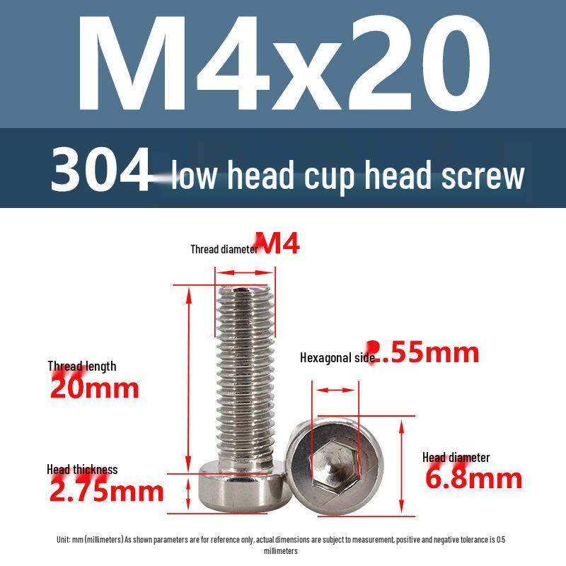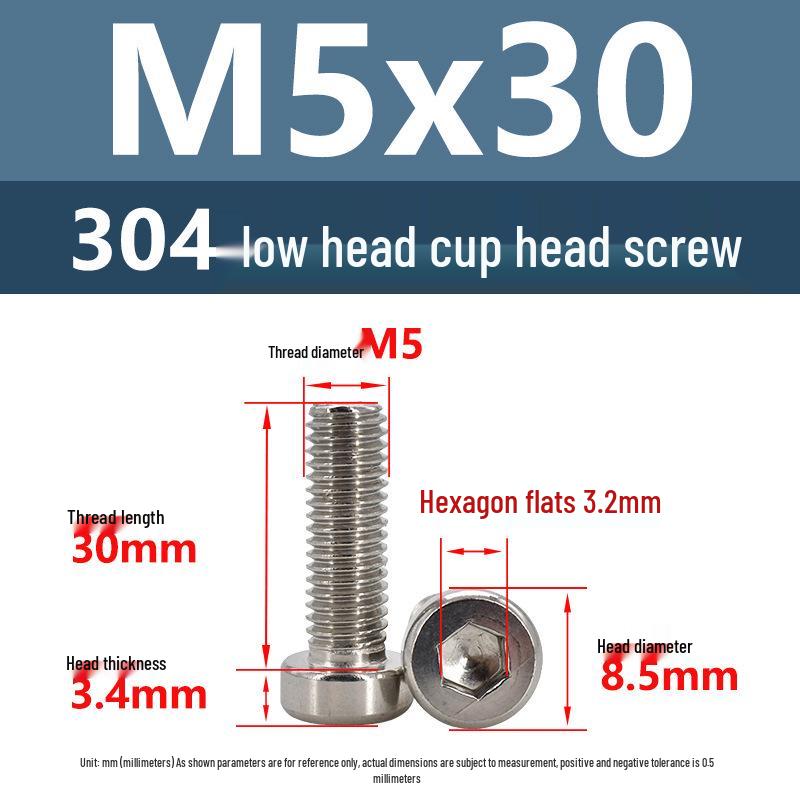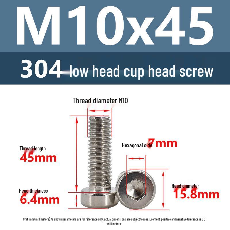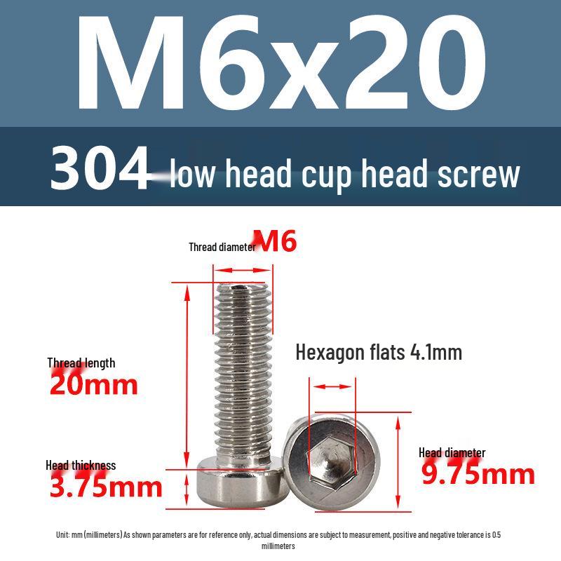 Винты машинные с низкой головкой под шестигранник из нержавеющей стали 304 M3-M10