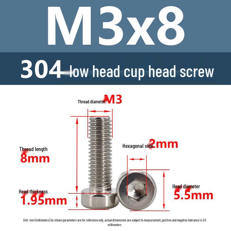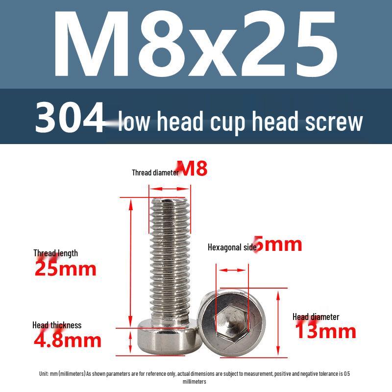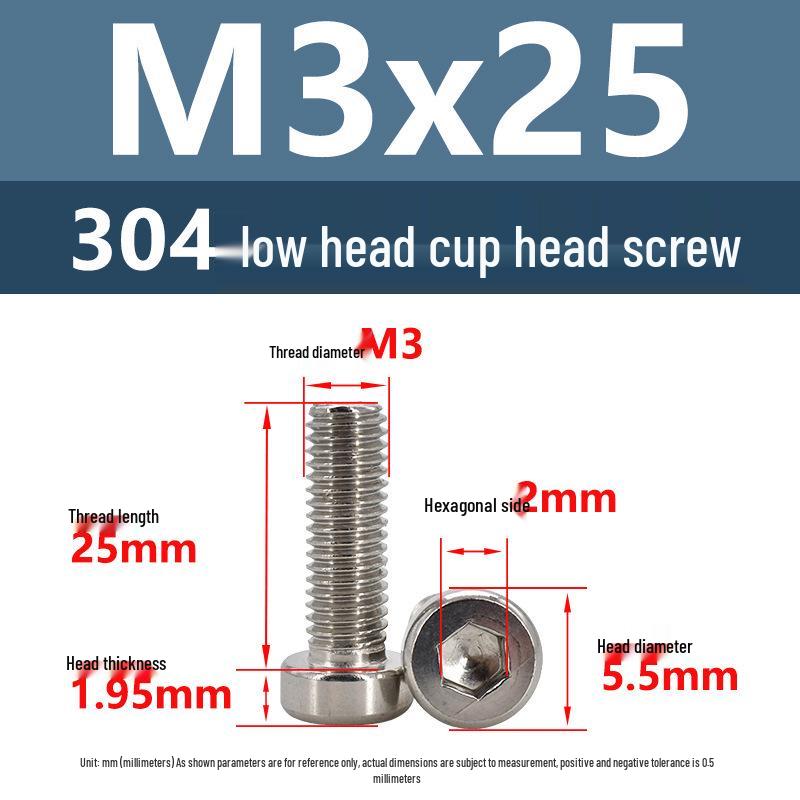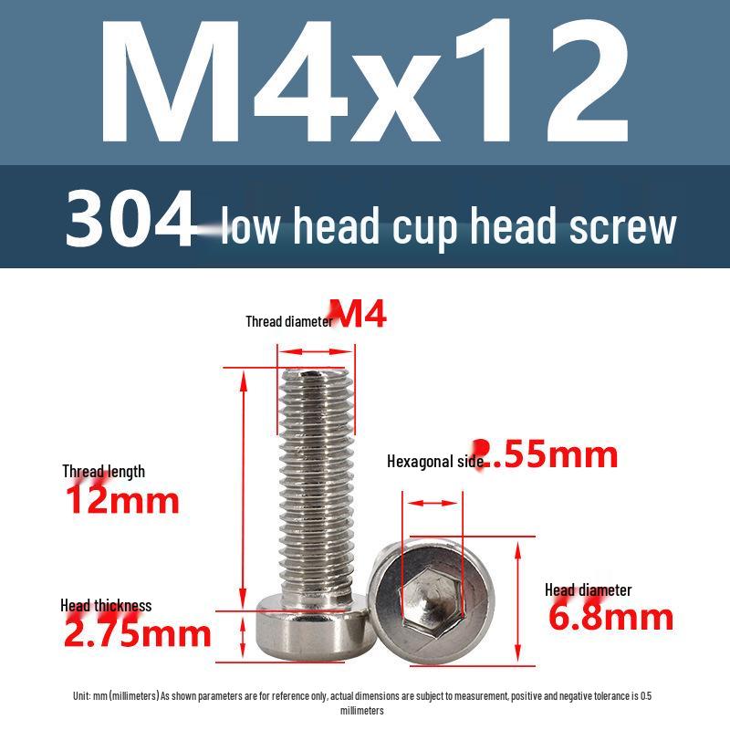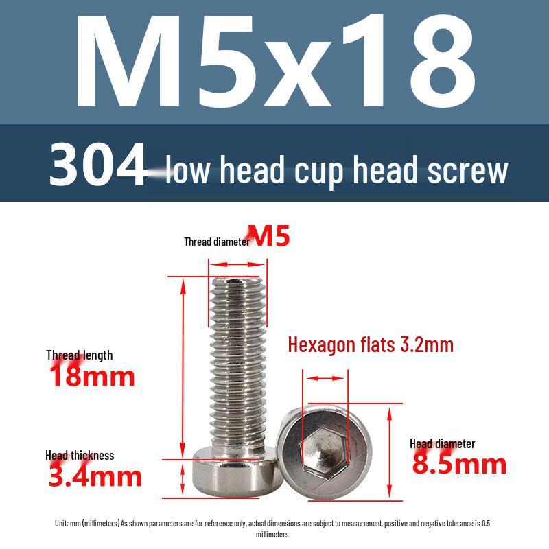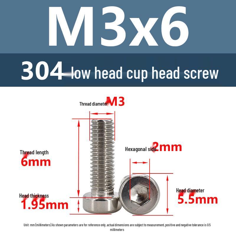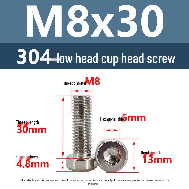 Винты машинные с низкой головкой под шестигранник из нержавеющей стали 304 M3-M10