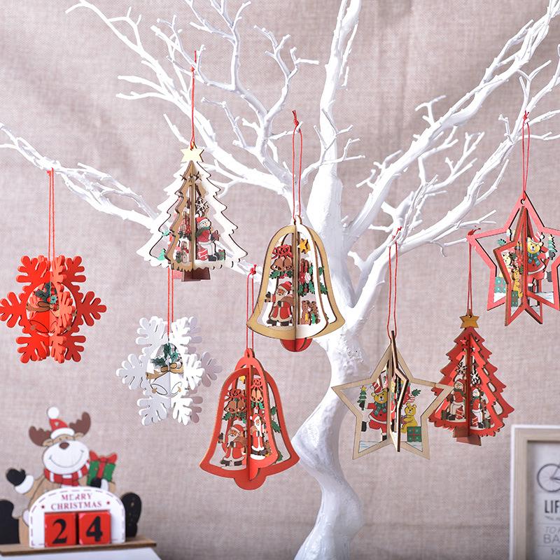 Деревянные лазерной резки 3D подвесные украшения-снежинки для рождественских елок