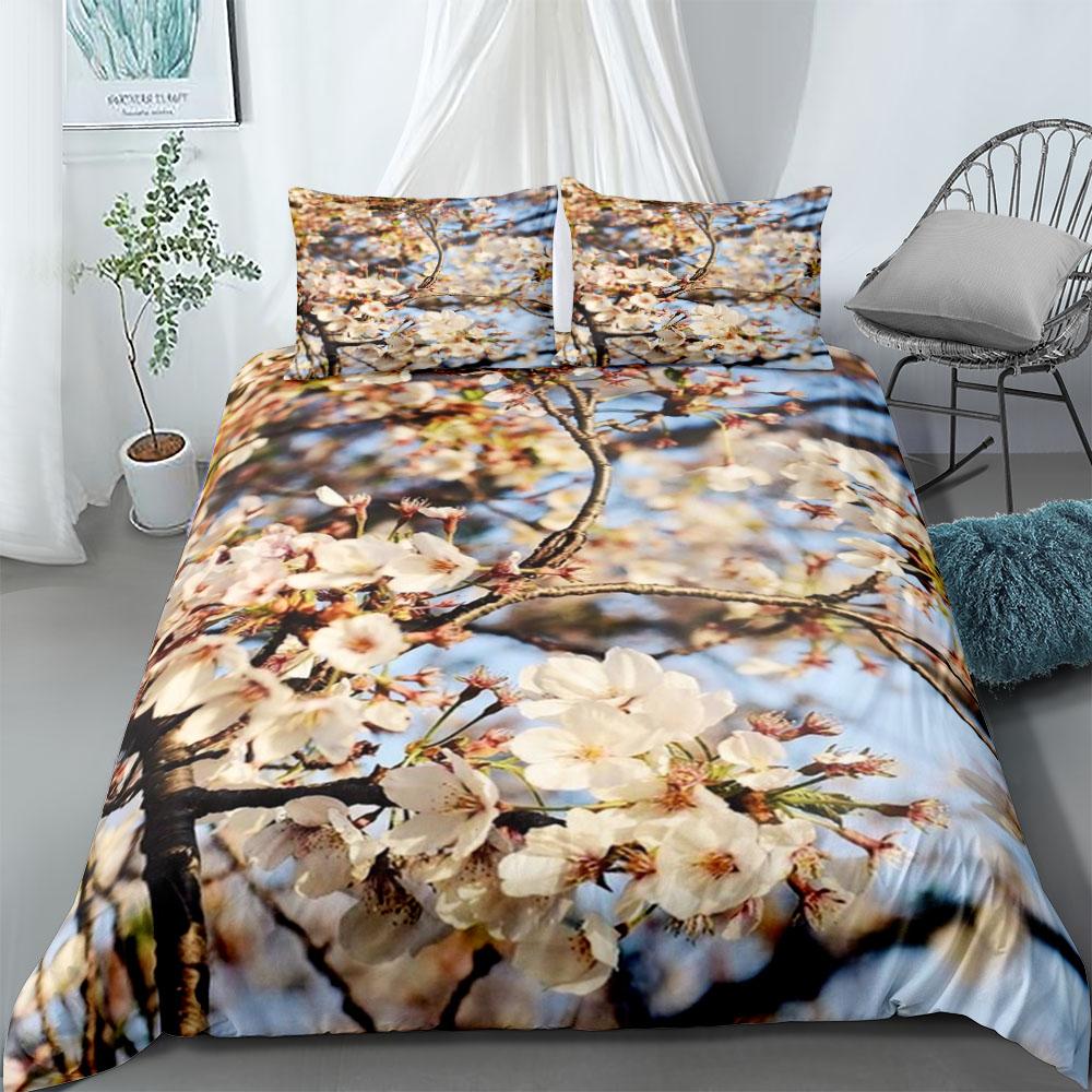 Cherry Blossom Floral Duvet Cover Set Uk Single Double Queen Us Twin Full King Size Pkm Bed Linen Set