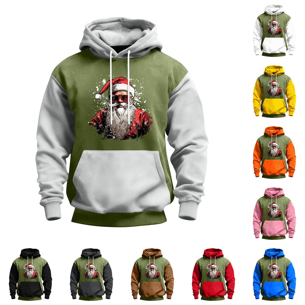 Мужской рождественский свитшот с капюшоном, повседневный, спортивный, удобный, с цветными блоками и принтом