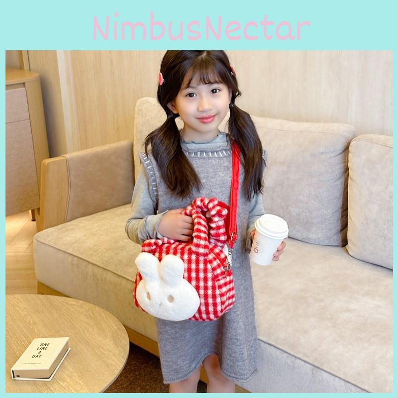 And Playful Cozy Plush Rabbit Shoulder Bag For Children With Trendy Checkered Design For Use Daily