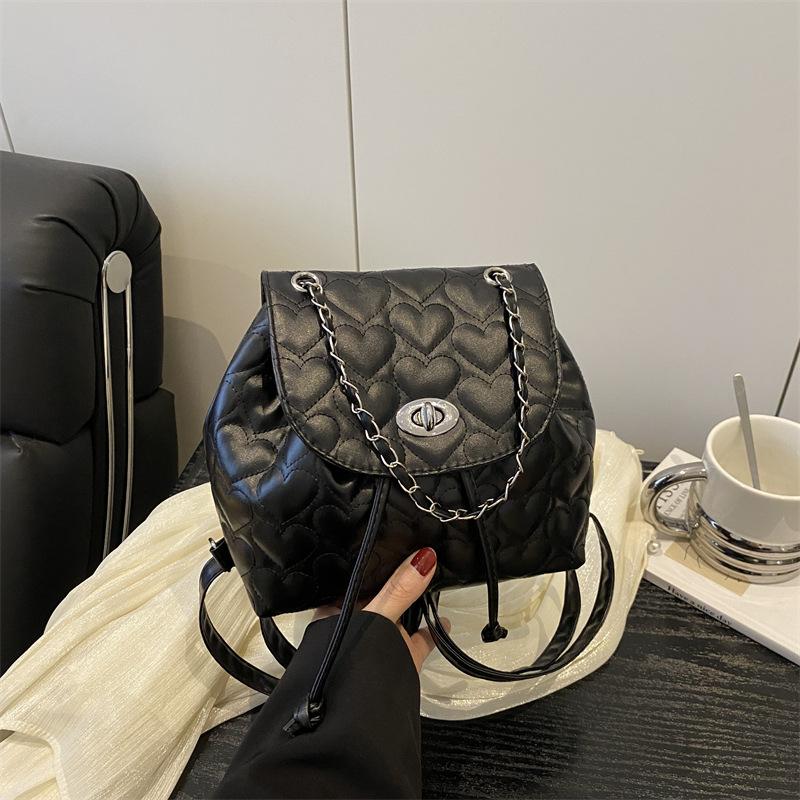 Love rhombus chain backpack women's 2025 new fashion Korean version casual backpack shoulder bucket bag