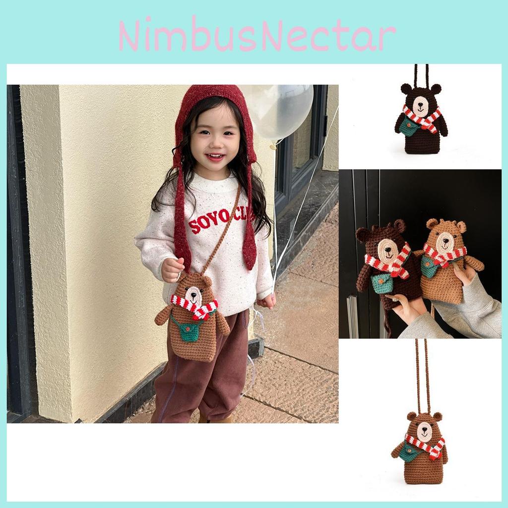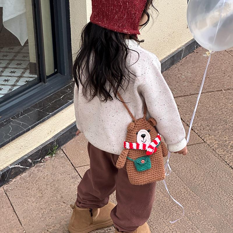 Cute Knit Bear Sling Bag For Kids Ideal For Daily Wear With Charming Cartoon Design Animal
