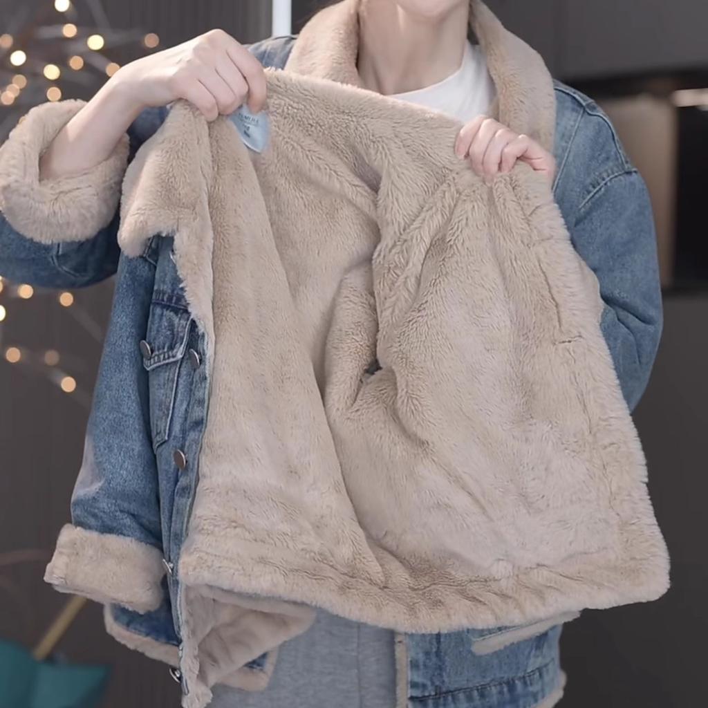 Девичья джинсовая куртка в западном стиле, свободная и пушистая, зимняя, девичья детская толстая куртка, зимняя одежда, тренд корейской версии