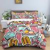 Комплект пододеяльника для перекуса с рисунком кофе, хлеба, пончика, розовый полиэстеровый чехол для одеяла для детей, взрослых, подростков, комплект постельного белья размера квин/кинг