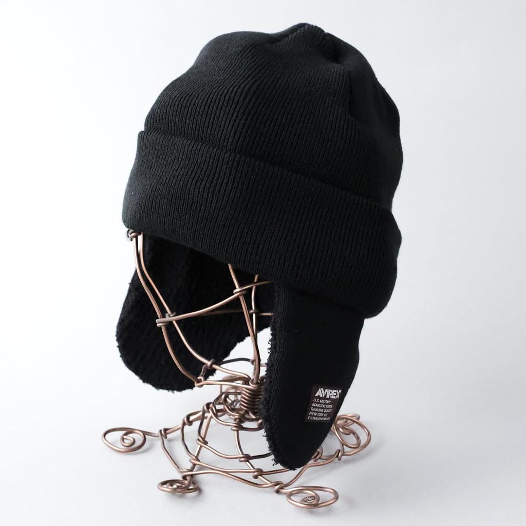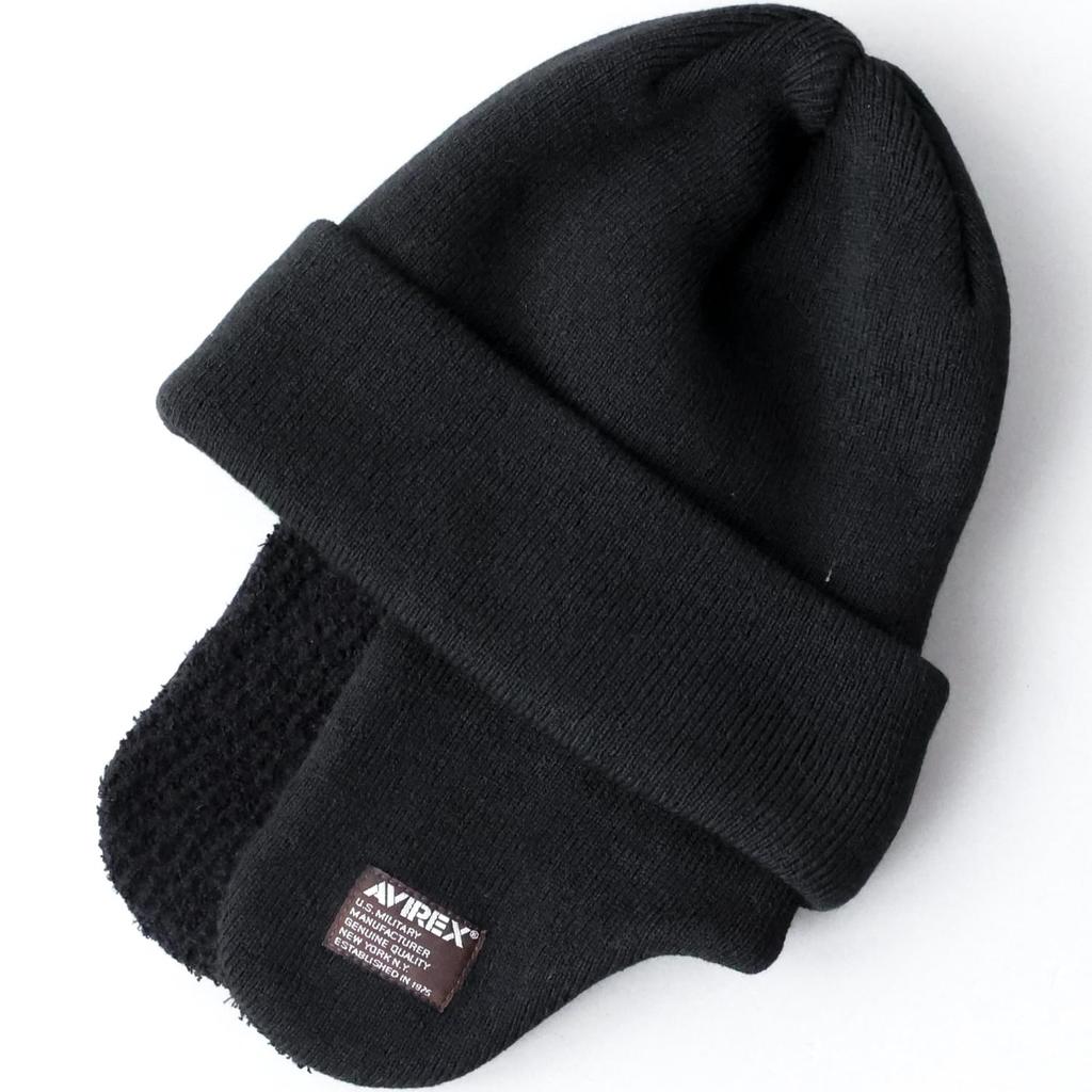 Эта простая вязаная шапка с ушками изготавливается на заказ от AVIREX и наследует традиции американской военной одежды.