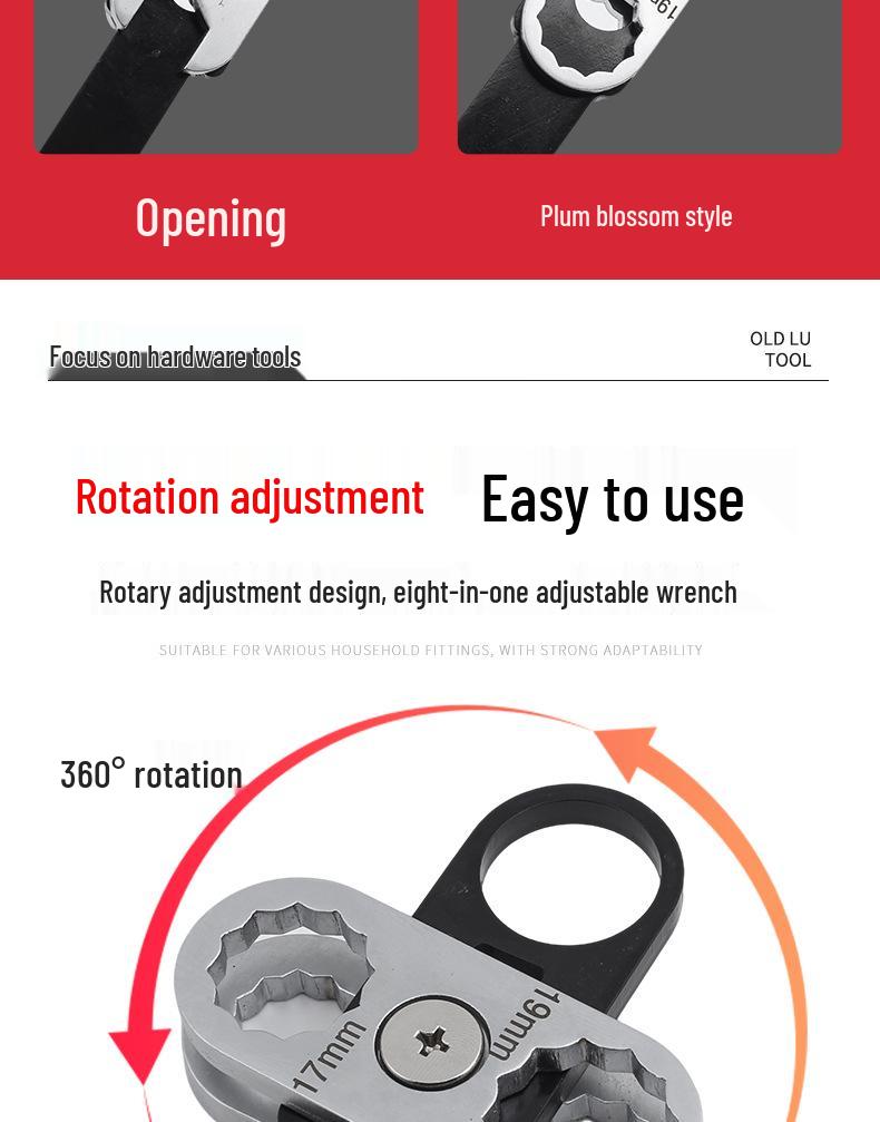 Вращающийся на 360° регулируемый 8-в-1 двухсторонний торцевой ключ для авторемонта